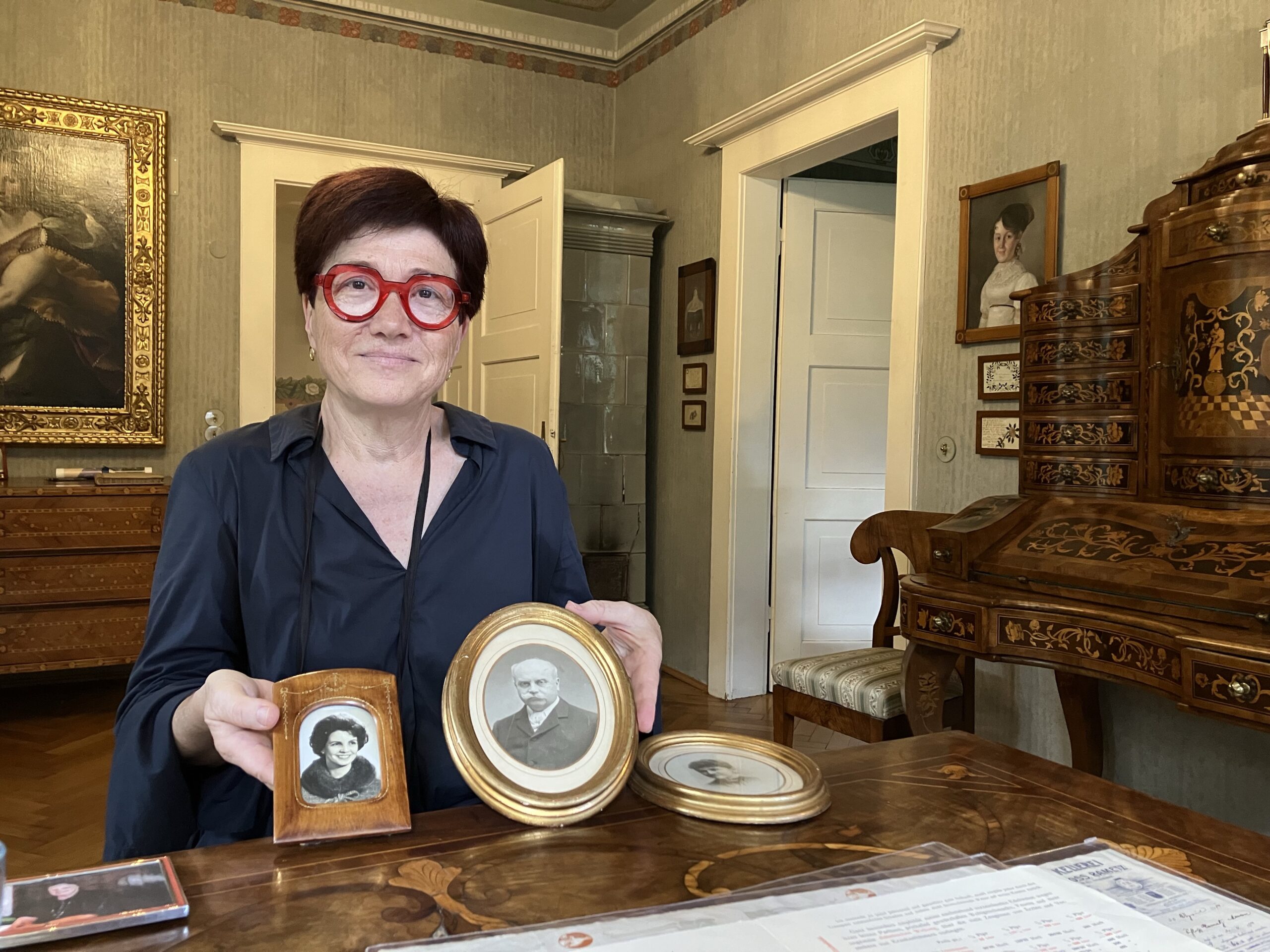 Die beiden, die in einem heiteren Moment auf der Schwarz-Weiß Fotografie festgehalten worden sind, bezaubern die Besucher: innen, die in die geräumige Küche der Villa Kinsele geladen werden – und machen neugierig auf jene, die hier gewohnt haben, auf ihre Geschichten und den Geist, der durch die Räume weht. Der ist nicht so leicht zu fassen, in dreihundert Jahren brausen viele Windböen um den alten Turm der Maria-Schnee-Kirche. Aber es gibt jahrhundertealte Wandkästen in der Villa, schmiedeeiserne Schlösser, florale Fresken, robuste Truhen und im Dachboden sogar alte Schrankkoffer, die von Abschied und Alltag, von Reichtum und Moden, von Ehrgeiz, Schönheit und Handwerk, von Kunst und Vergänglichkeit erzählen. Gemütlich ist das Pfaffenzimmer, vielleicht entdeckt jemand den Hl. Donatus und die Frage, wie das Dienstmädchen heißt, das sich hinter der alten Täfelung mit einem Autogramm verewigt hat, kann der Gastgeber sicher auch beantworten. Wer in der Villa Kinsele übernachten darf, schläft gut. Der Blick aus dem Schlafzimmer fällt auf hohe alte Bäume und markante Berge, einen kleinen Kirchturm, einen geheimnisvollen Gang, einen rot gestrichenen Balkon und auf Grün, das üppig durch den Sommer leuchtet. Dieser Moment, an dem der Schlaf vorbeigezogen ist und ein neuer Tag anbricht, ist ein magischer – vor allem, wenn Entspannung und Leichtigkeit die Stuben und das Herz umgarnen: In diesem Haus werden viele in Glück den Tag beginnen! Und wer genau lauscht, der vermag die Geheimnisse vielleicht zu hören und zu deuten: Der Frieden liegt im Augenblick. Nichts ist umsonst, nichts ist zufällig, nichts ist nur ein Wimpernschlag im Wind. Das, was wirklich bleibt, ist unsichtbar. Unsichtbar wie der Reigen an Gefühlen in jener Frau mit Steckfrisur, in knöchellangem Rock und auffällig schmaler Taille, die schwebend auf Stelzen geht an einem Sommertag.