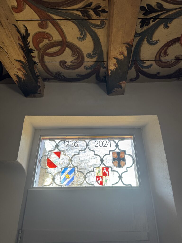 Die elegant geschnitzten Röschen in der Stuben-Täfelung (siehe Beitrag „Fenster in die Vergangenheit 3“) waren nur ein Teil der optischen Genüsse, die wir in unserer Sommerfrische in der Villa Kinsele erleben durften: Eine wunderbar renovierte Stube, in der das Element Holz rundum für Behaglichkeit sorgt und eine moderne Küchenzeile den Kontrapunkt fürs Auge und die Praktikabilität im Alltag setzt. Der Blick aus dem Fenster fällt auf die großen jahrhundertealten Bäume mit ihren sattgrünen Blättern. Unsere Wohnung „Johanna“ liegt im oberen Stock und verfügt neben der getäfelten Stube über ein sehr geräumiges Schlafzimmer mit Balkon, Blick ins Grüne und auf die Kapelle Maria Schnee. Am liebsten würde man den ganzen Tag im Haus verbringen und das wahrlich historische Ambiente genießen, indem man das perfekt renovierte Stiegenhaus mit seinen geheimnisvollen Gemälden und alten Möbelstücken auch noch mit bewohnt. Eigentlich ist die Woche hier als Gast viel zu kurz geworden. Ein kleiner Trost ist (und wer unsere Gastgeber kennt, weiß es): nicht nur jedes Stück und Element hier in der Villa Kinsele hat seine eigene Historie, sondern auch jeder Gast schreibt die Geschichte des Hauses in irgendeiner Weise ein kleines Stück weiter. Wir danken für diese Möglichkeit und die besondere gastliche Aufnahme und hoffen auf eine Fortsetzung der Geschichte irgendwann.