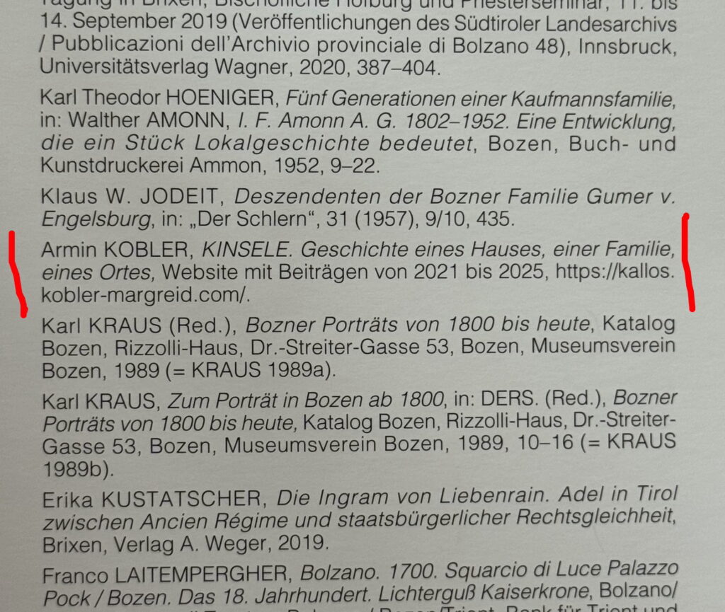 1726 kauft nämlich Andre Lanner von den Oberhofer-Eheleuten ein vor kurzem angebautes Gebäude. Aus meinem detaillierteren Bericht von 2024: „Herr Andreen Laners aus Bozen und Mathias Prackhwieser Oberhofer und seiner Ehewirtin [Ursula] Lintnerin.“ „… Oberpozen die daselbs bei d behausung nit Unlengsten hiezue Erpauten zwo Camern sambt all d ybrigen Umb- unnd Ingepeyen, Item kheller, Kichele, dillen re Stallele und dgleichen und zwar Specialiter alles ds Jenige was Unter den Obdach sollichen Neu Gepey sich befindet, wie auch ain darbey ligendes Stuckh Ertreich khreitle garthen.“ Laut der Beschreibung ist es kleiner als die spätere Villa, die Franz Sales Kinsele 1779 ersteigern wird. Die Lanner, Vater oder Sohn, haben dem Gebäude seine heutige Form gegeben.
