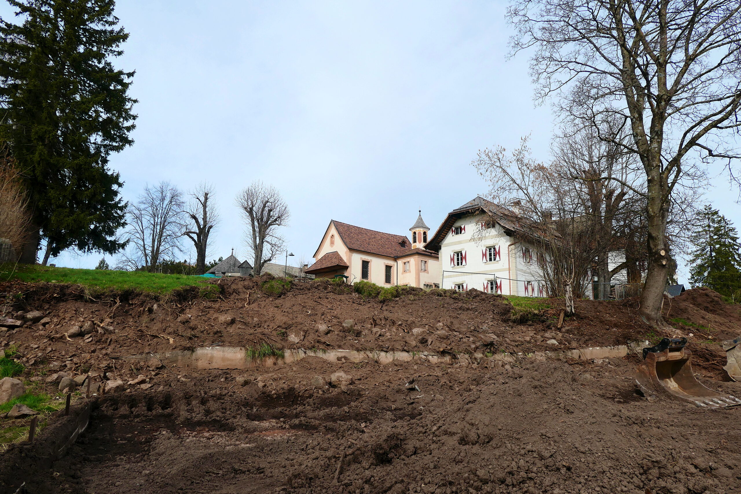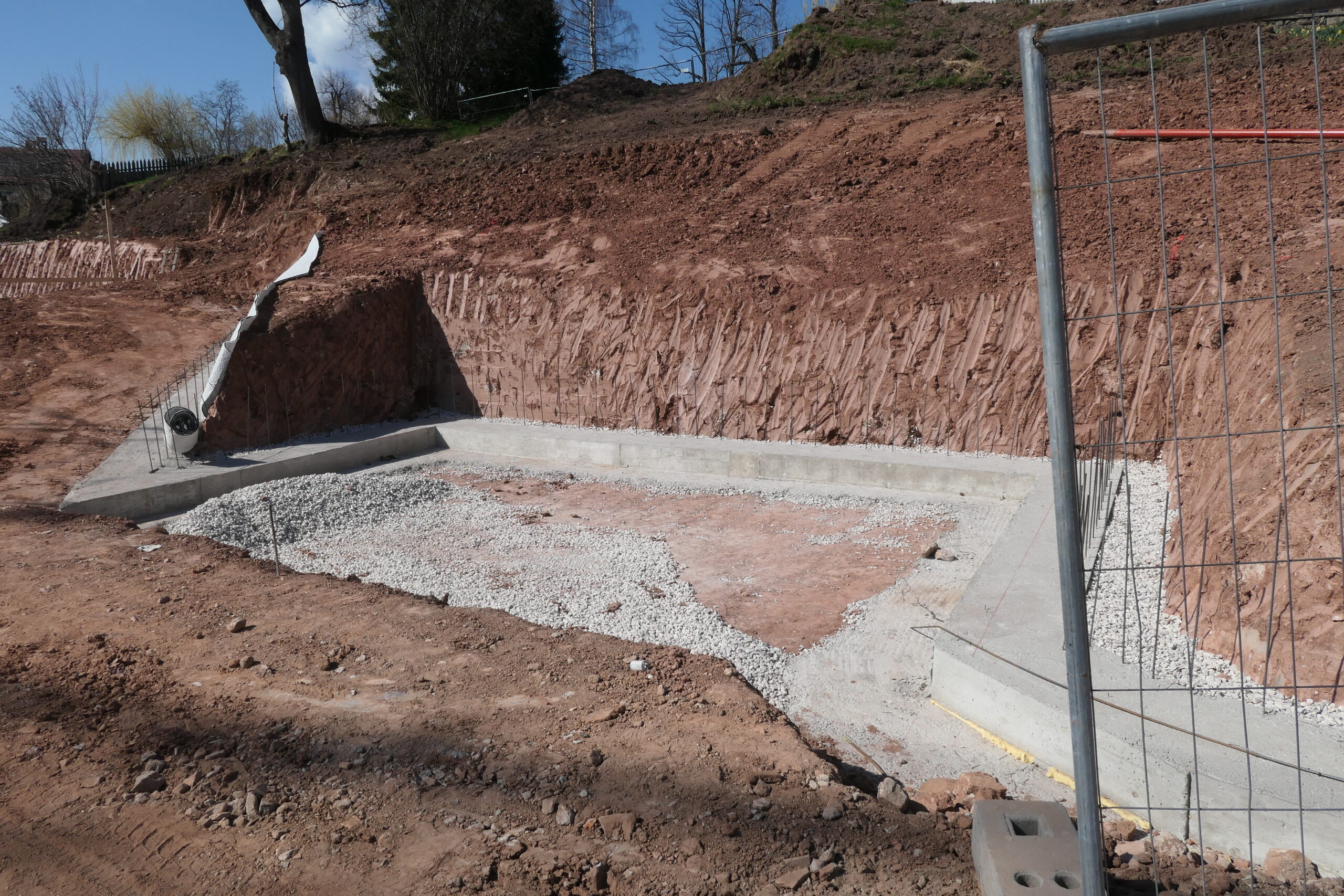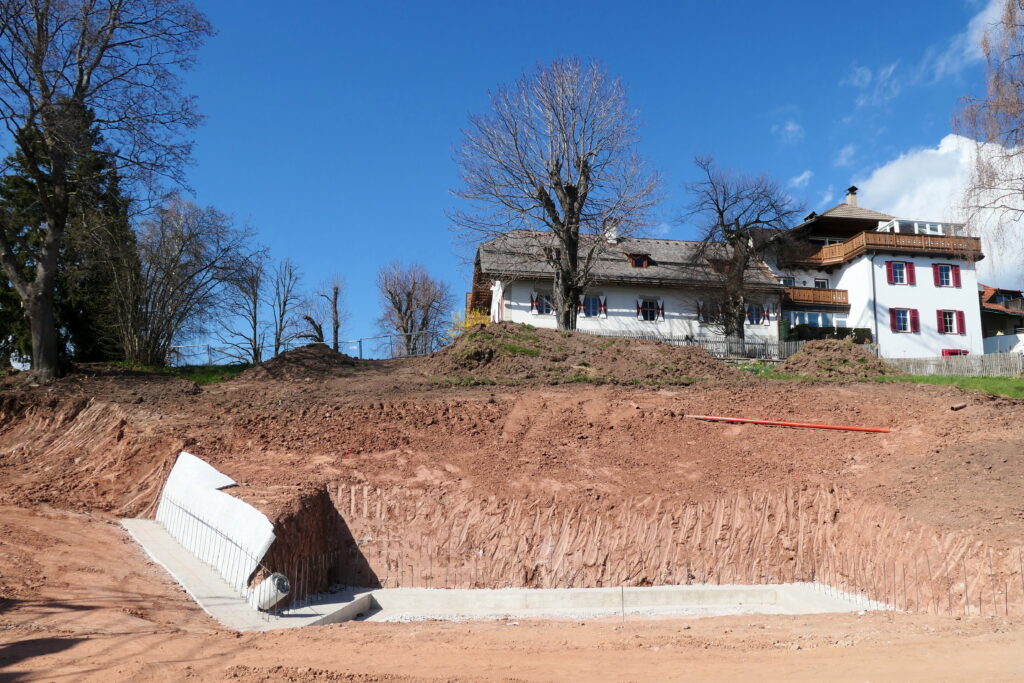 Mit dem Setzen der Bäume längs der zusätzlichen Einfahrt, welche im Rahmen von kleineren Grenzverschiebungen mit dem südlichen Nachbarn gebaut wurde (ich berichtete), kann auch dieses Vorhaben als beendet betrachtet werden. Es stimmt, der Bretterzaun muss wieder montiert und ergänzt werden und mittelfristig wäre es sinnvoll, auch ein Gitter am Beginn der Rampe montieren zu lassen. Aber momentan will ich weitere Ausgaben vermeiden und die Benutzbarkeit ist ja so auch gegeben.