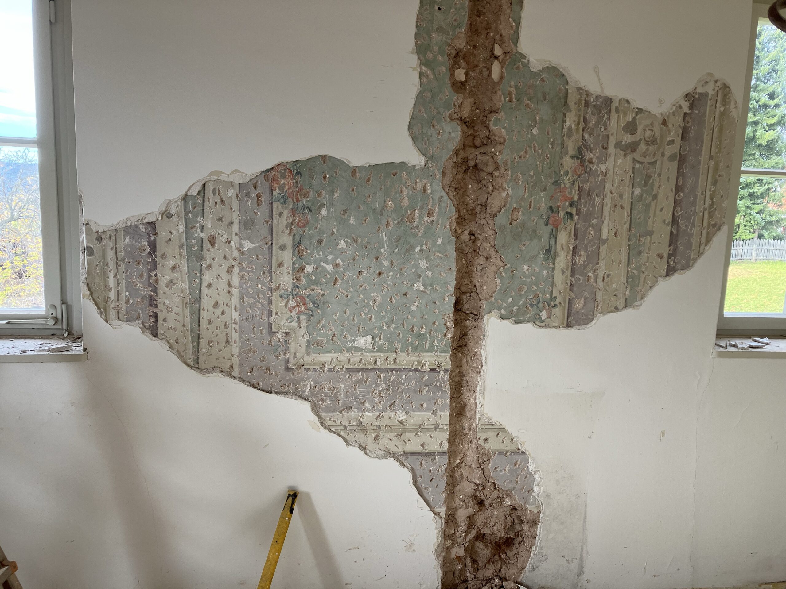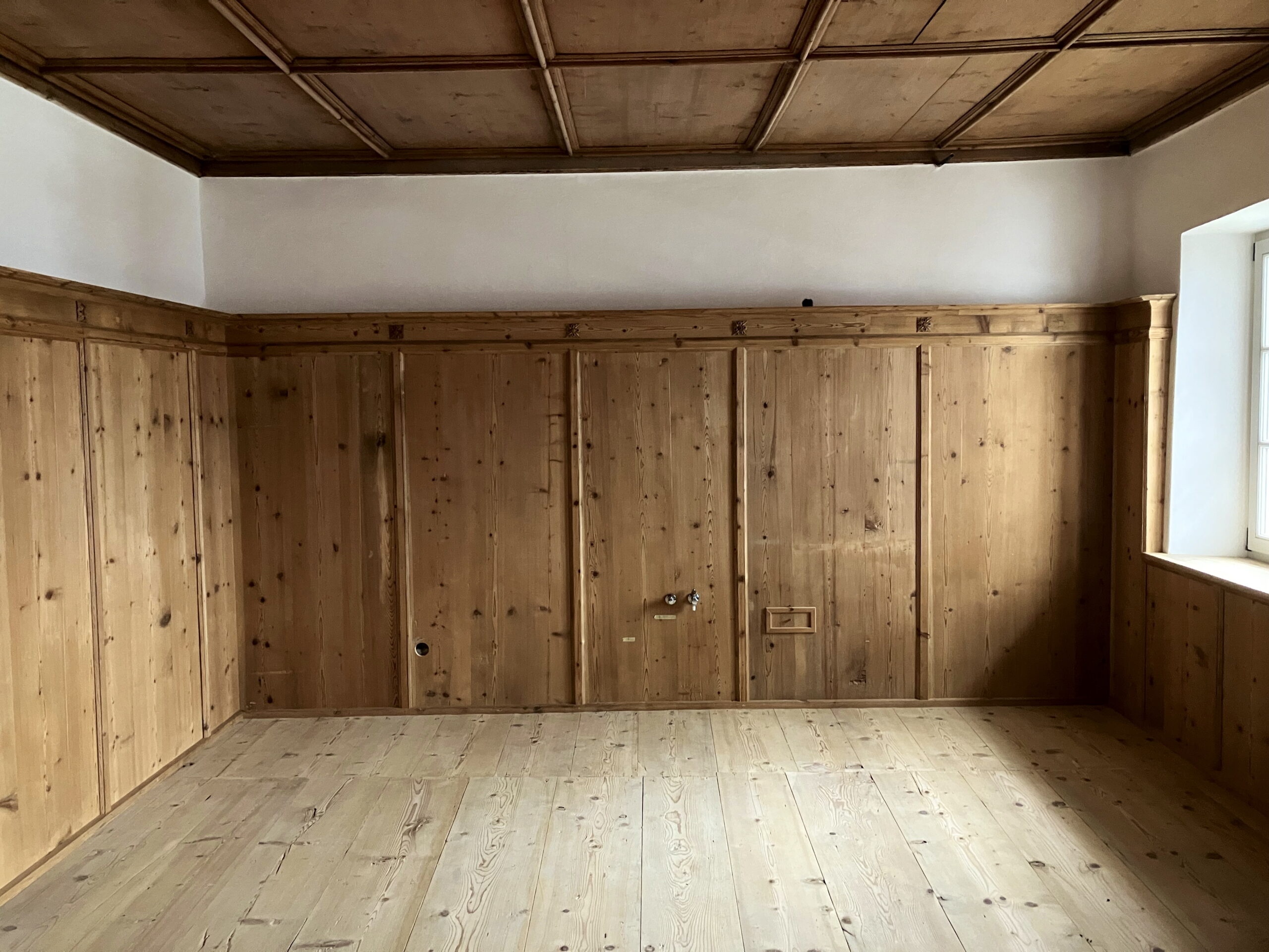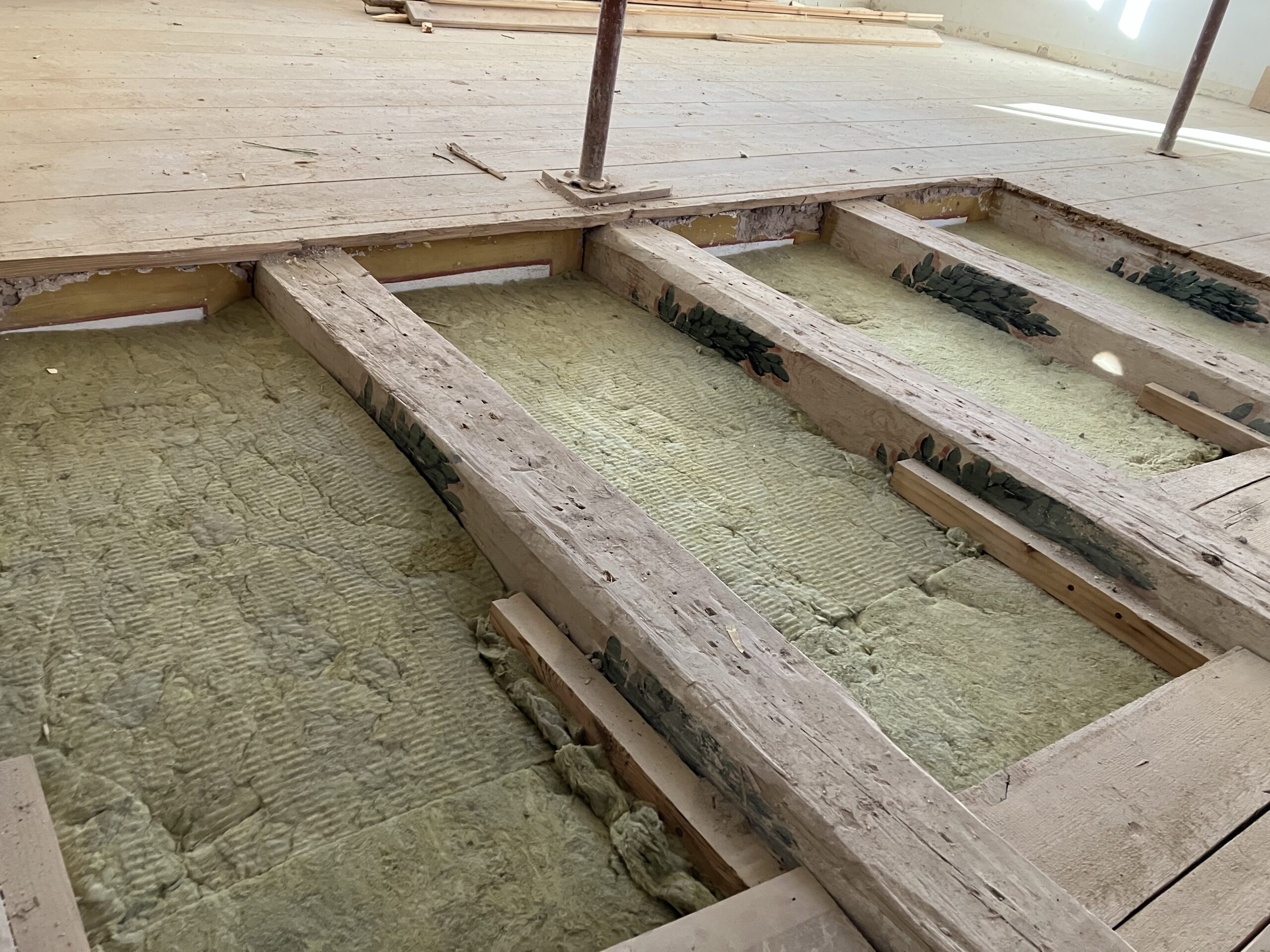 Entnahme der Täfelungen und der Holzböden, Entdeckung der Schablonenmalerei