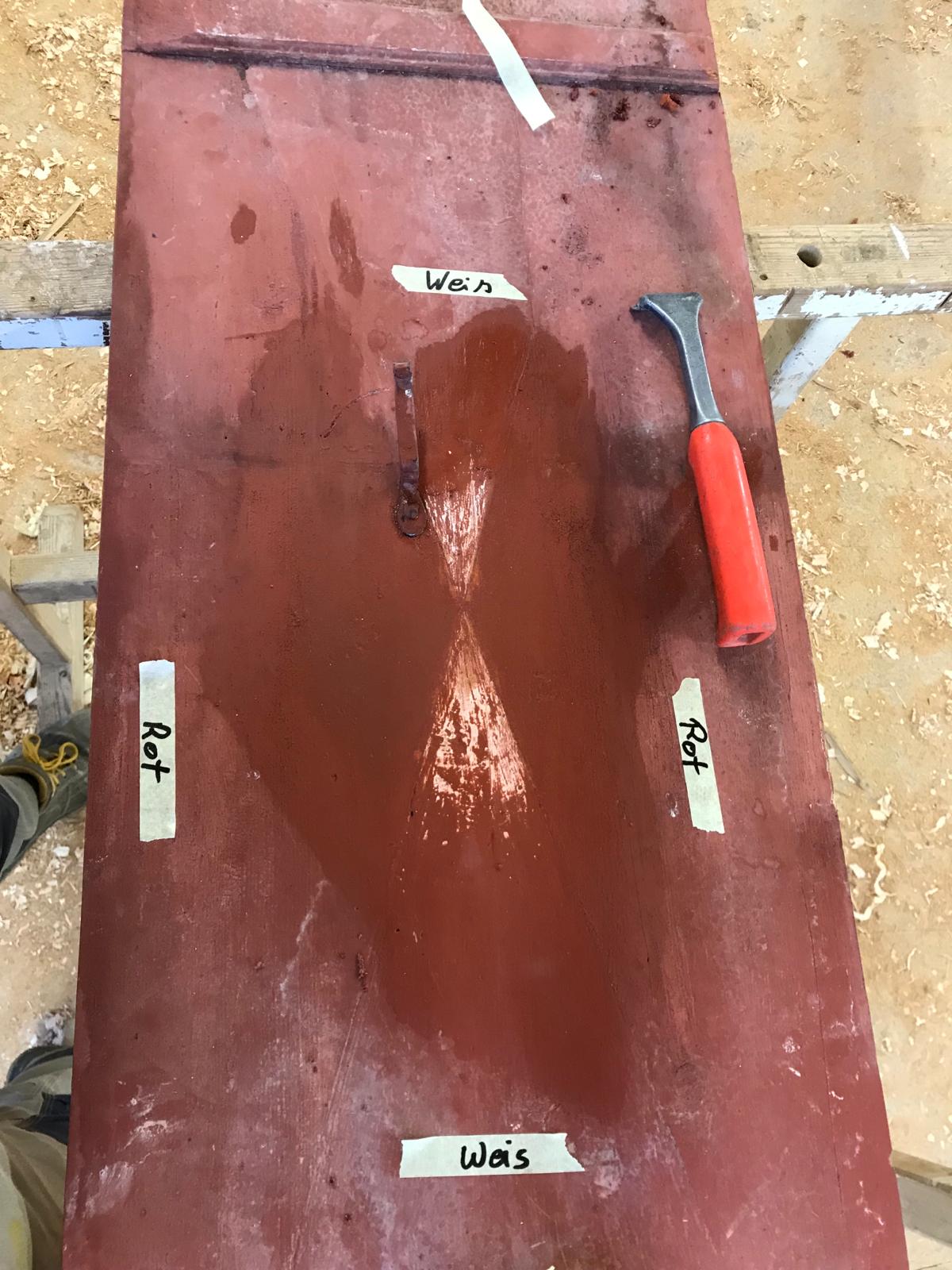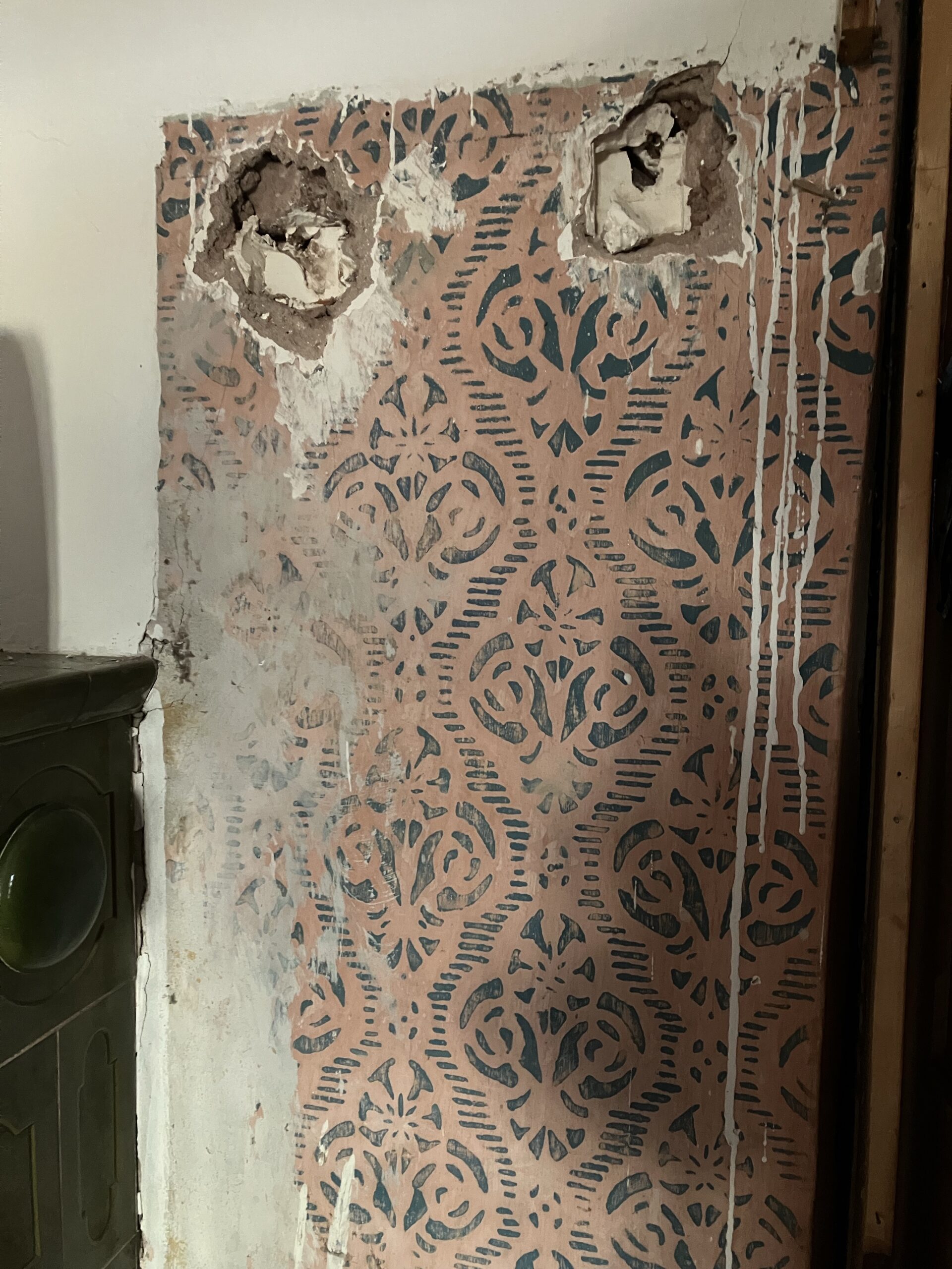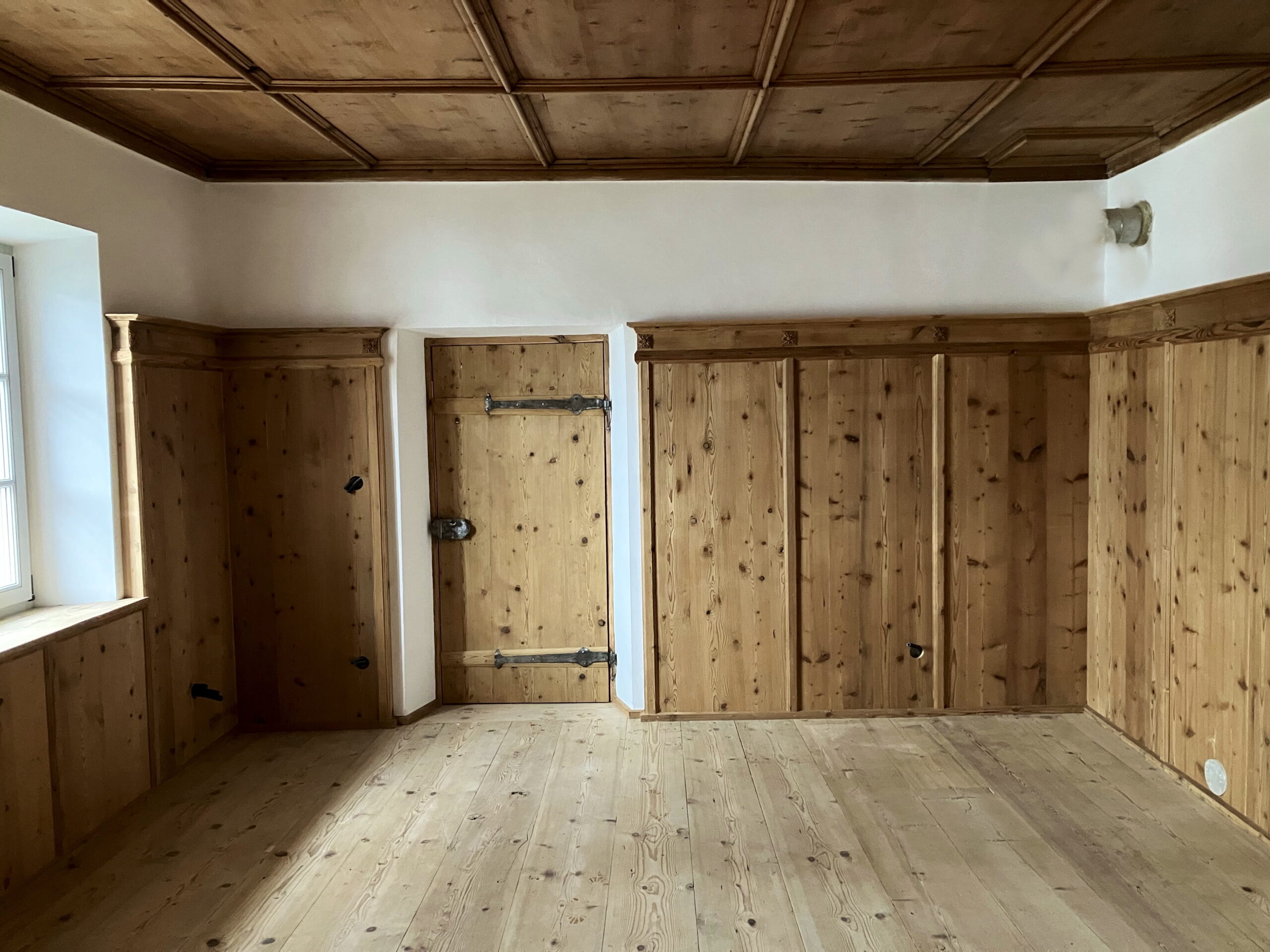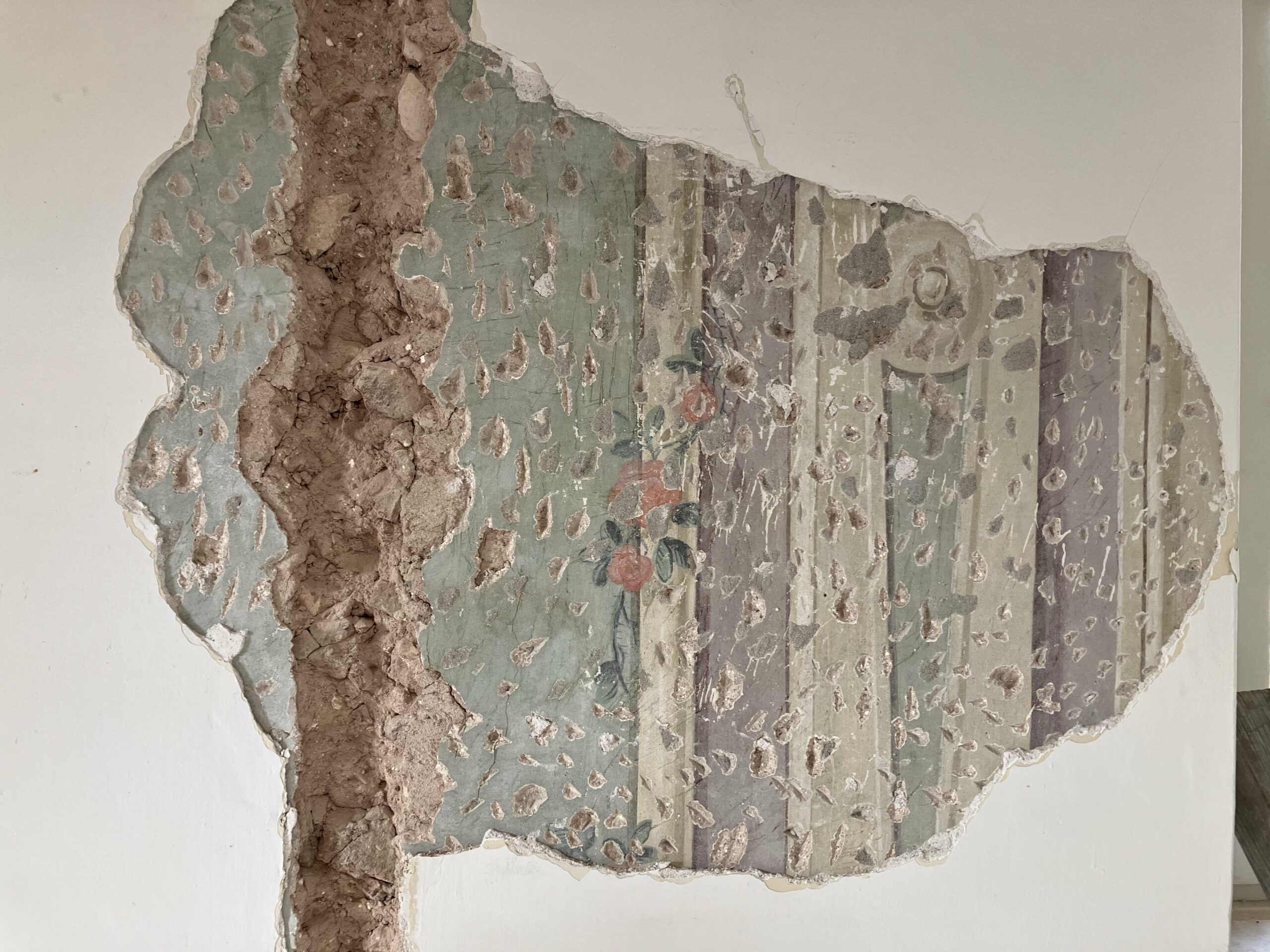 Entnahme der Täfelungen und der Holzböden, Entdeckung der Schablonenmalerei