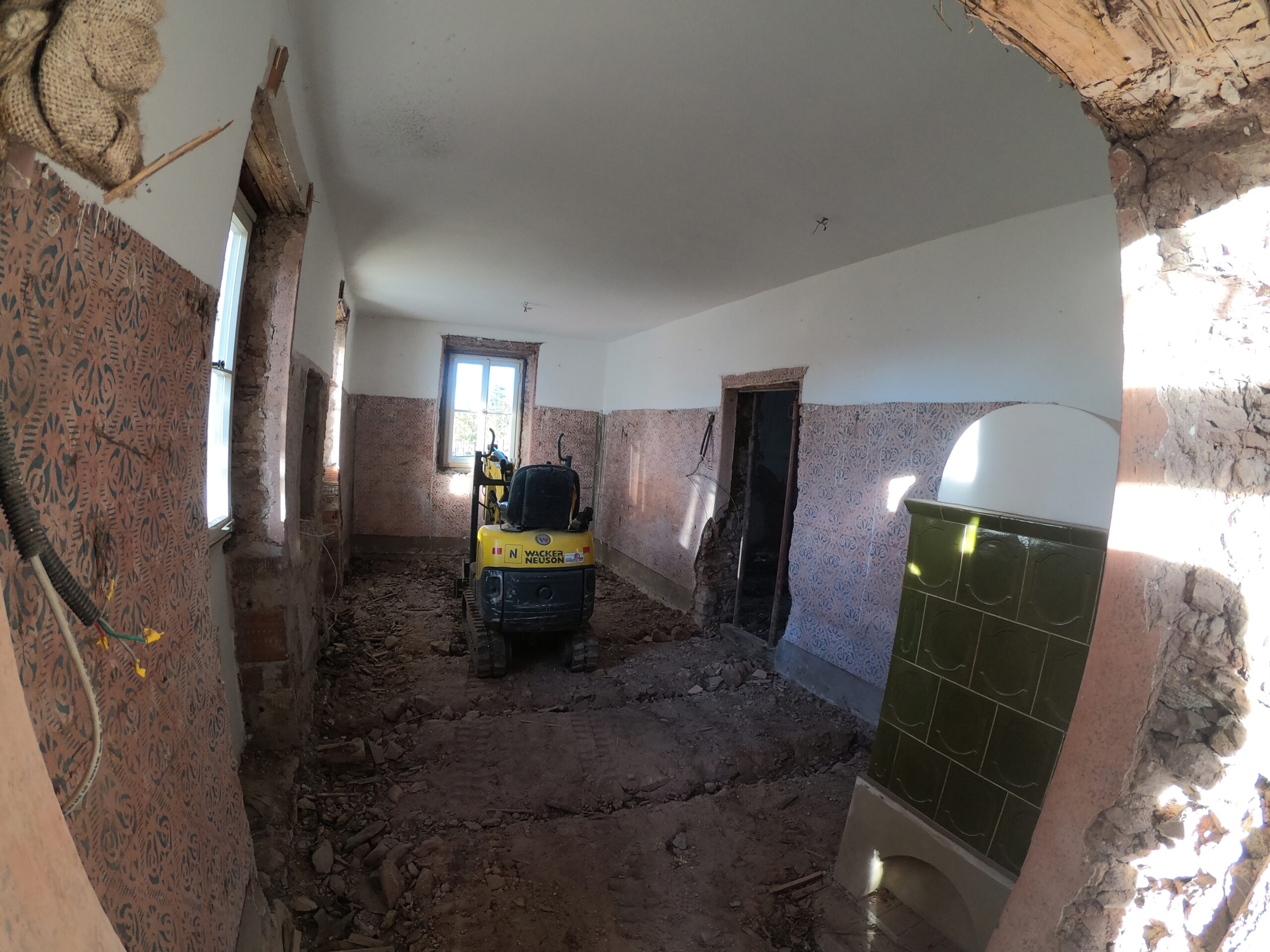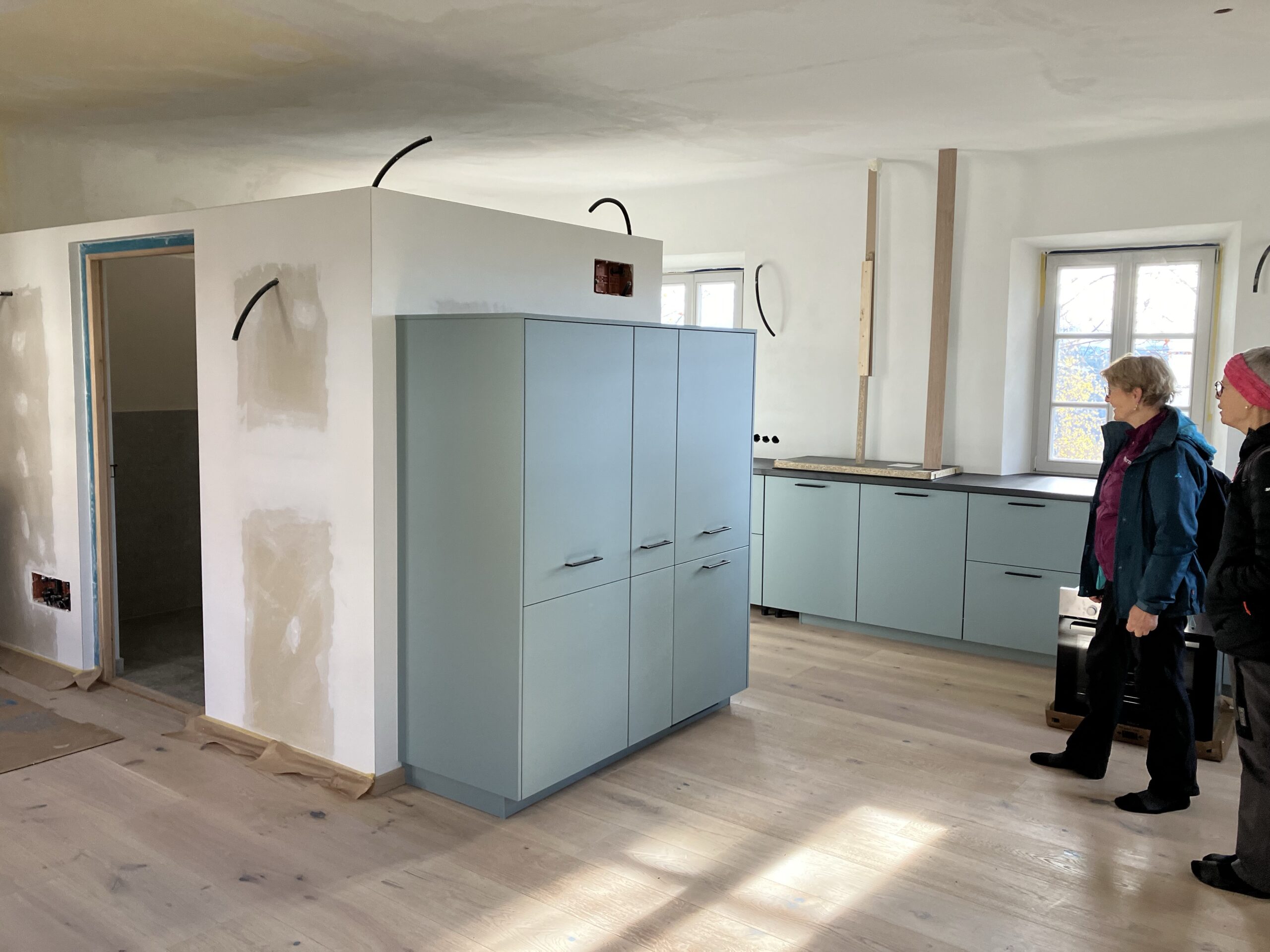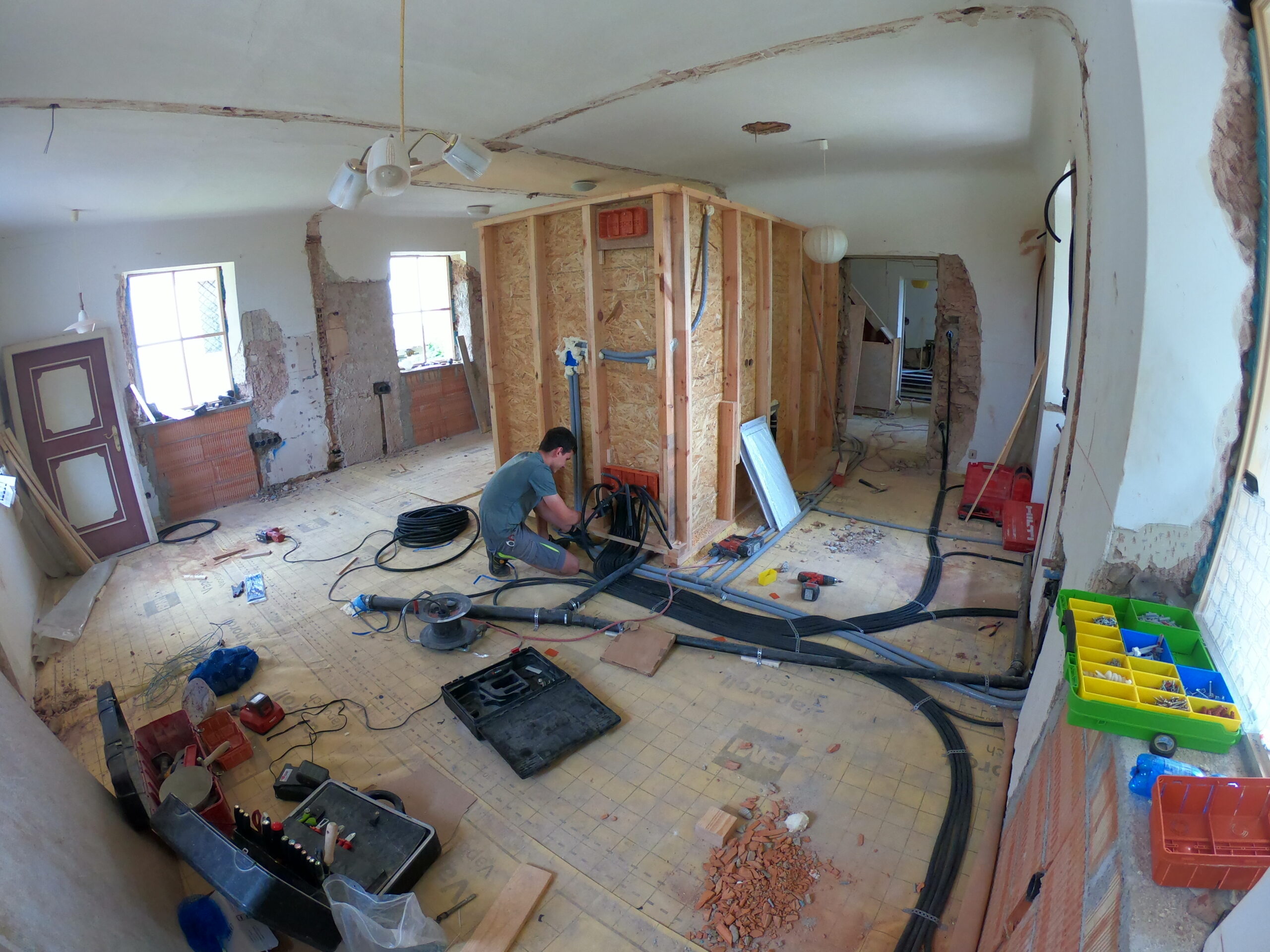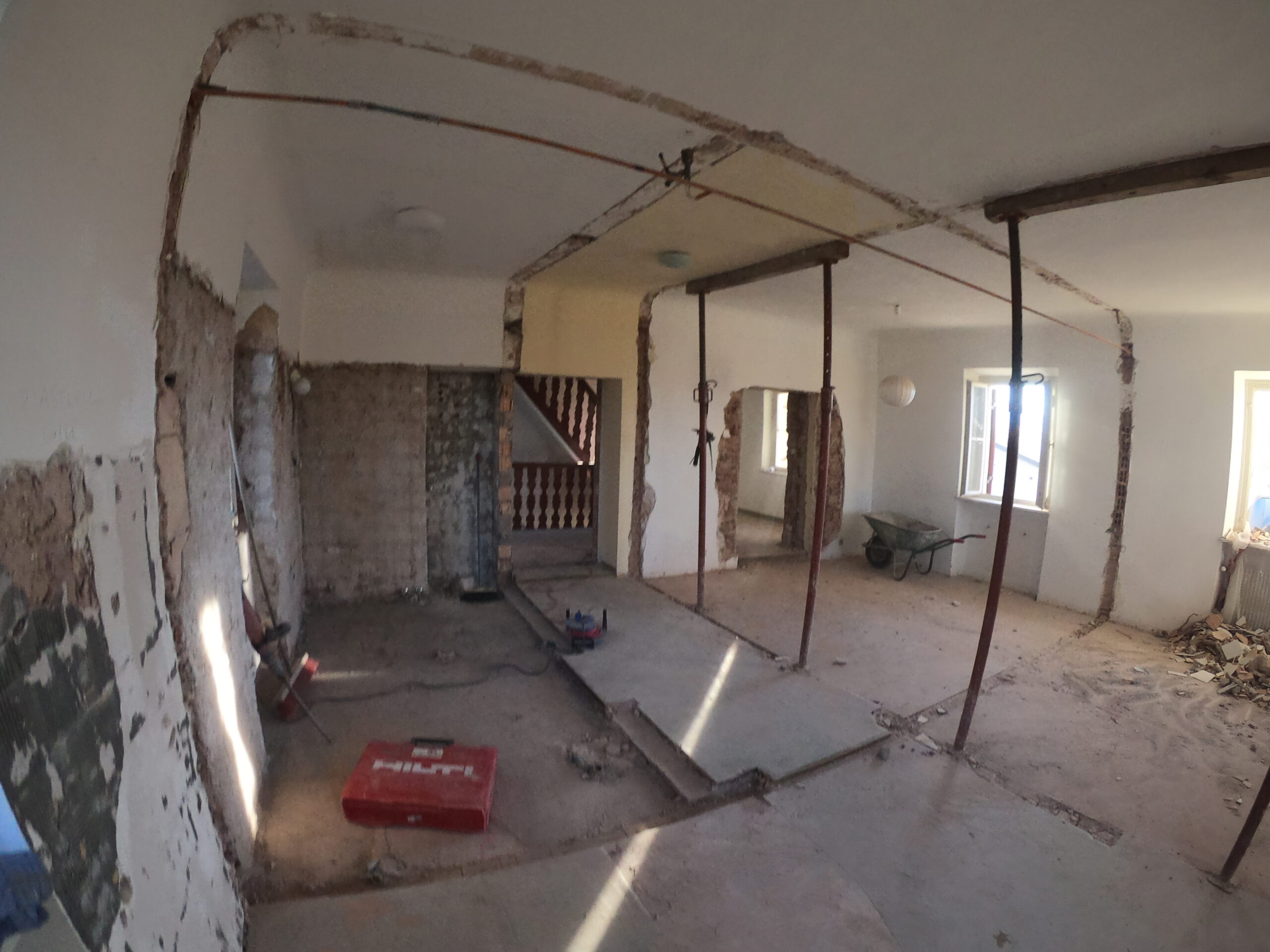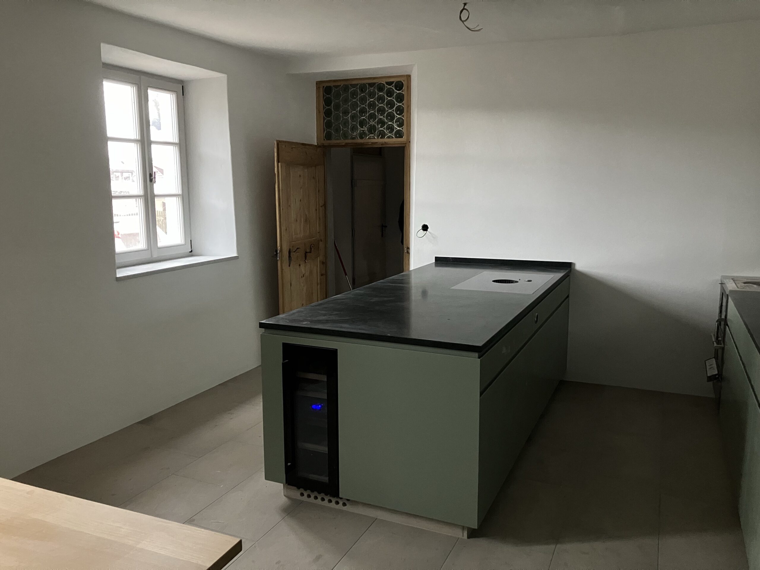 Verlegung Sandsteinplatten innen, neue Holzböden und Fließen