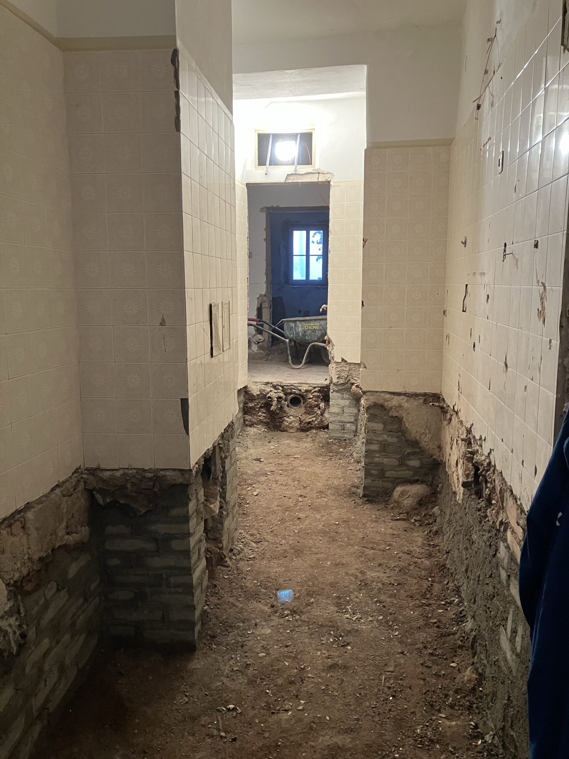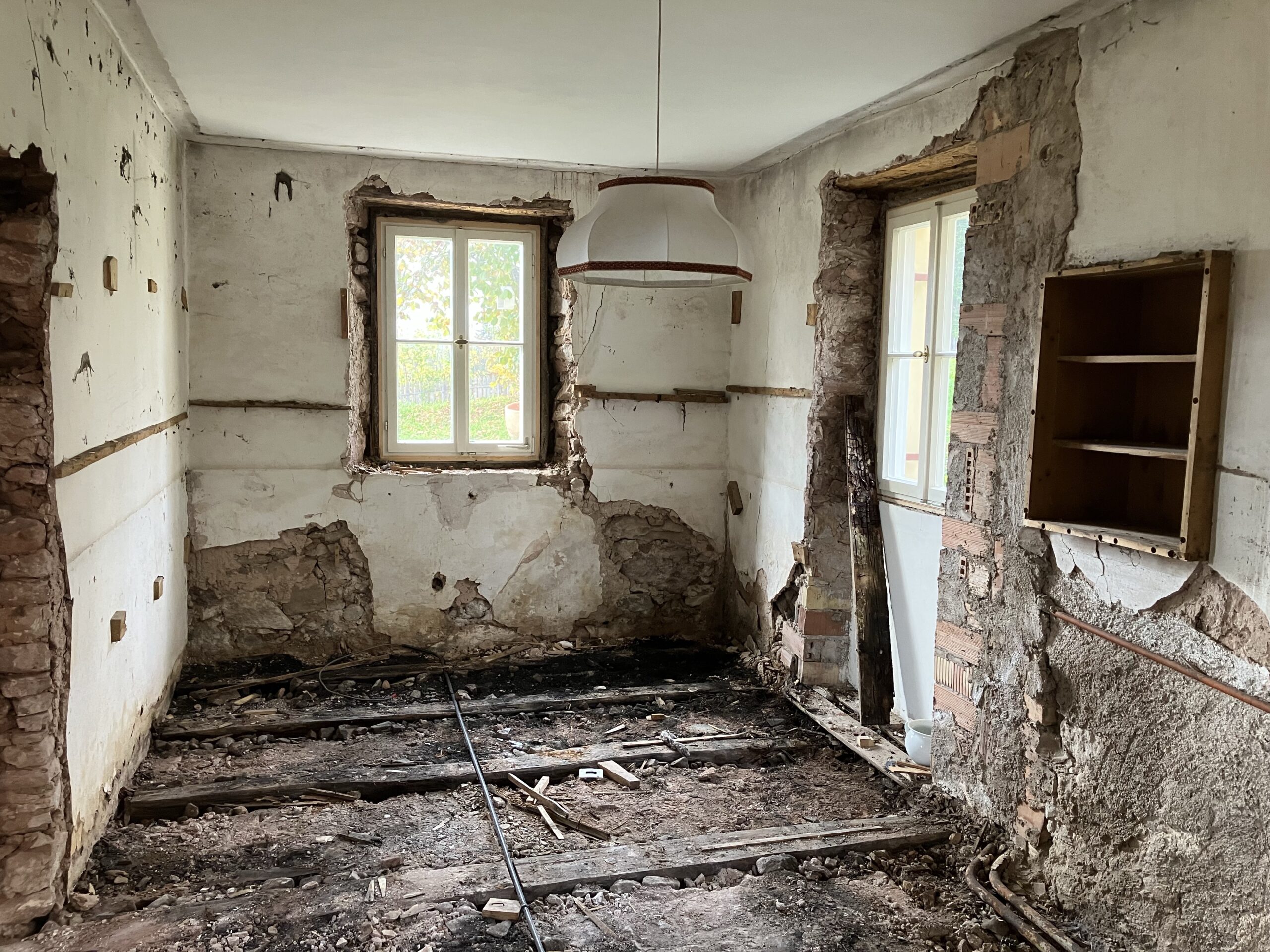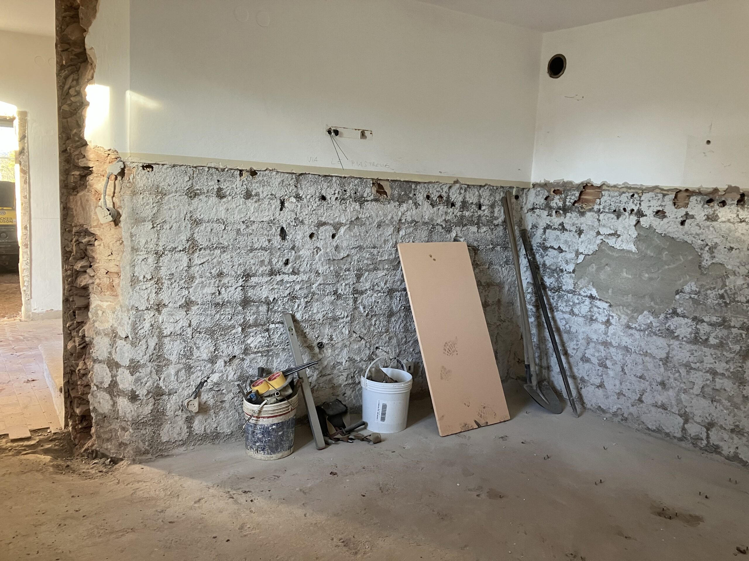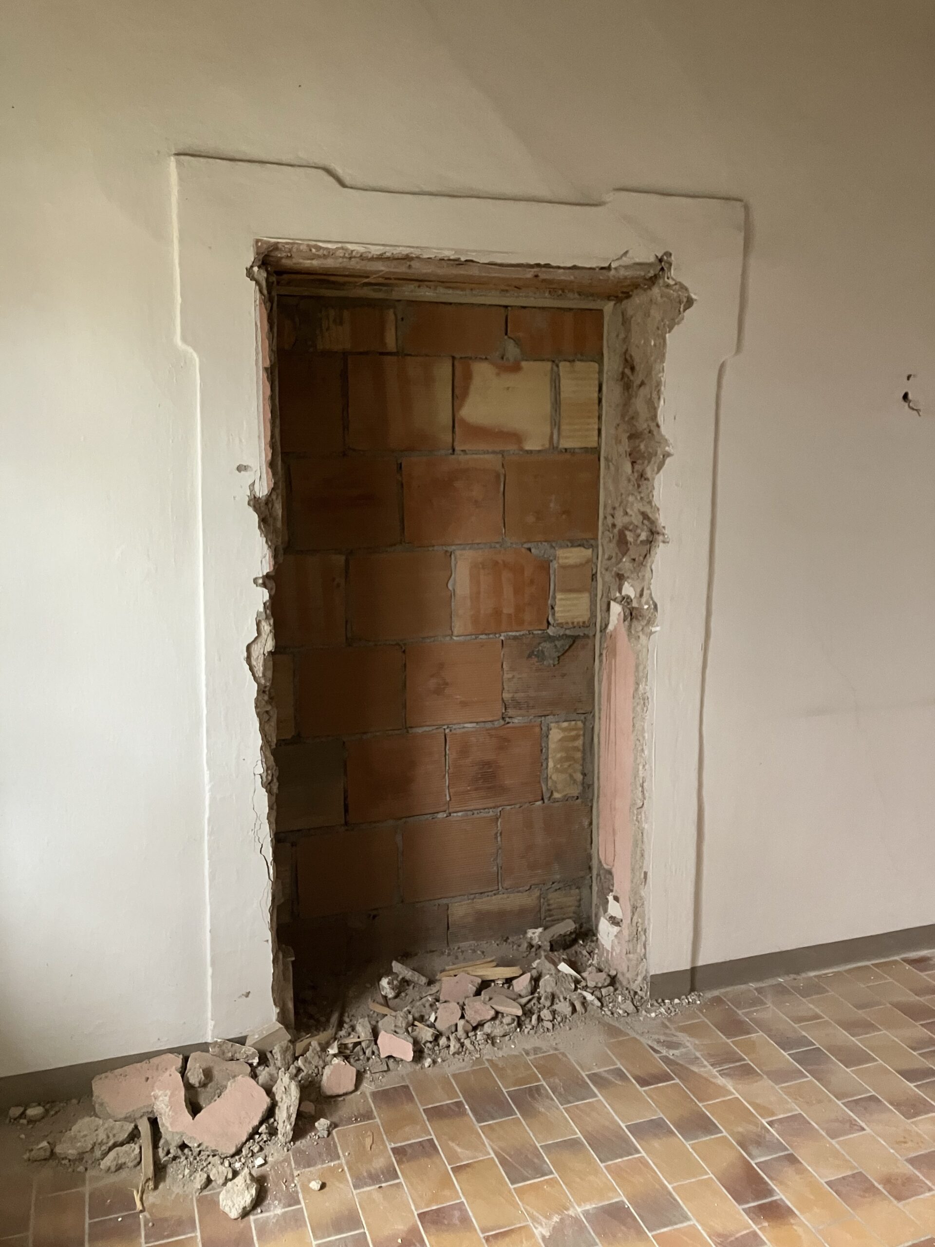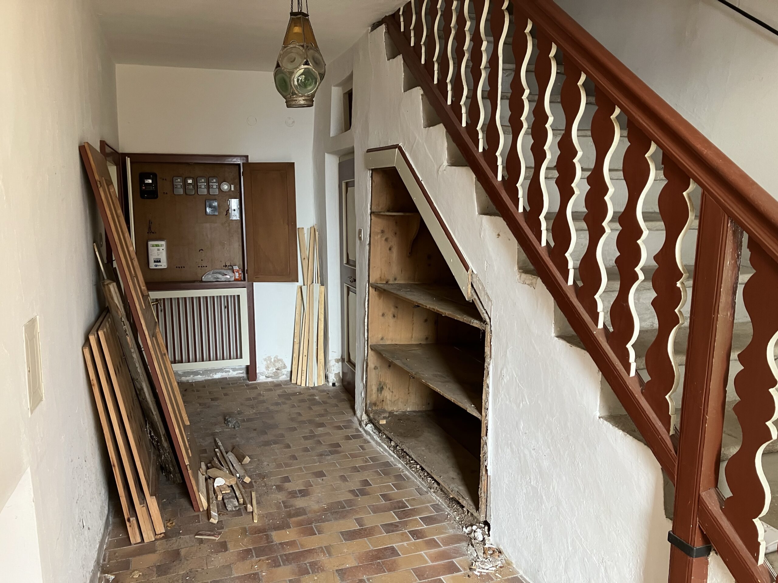 Verlegung Sandsteinplatten innen, neue Holzböden und Fließen
