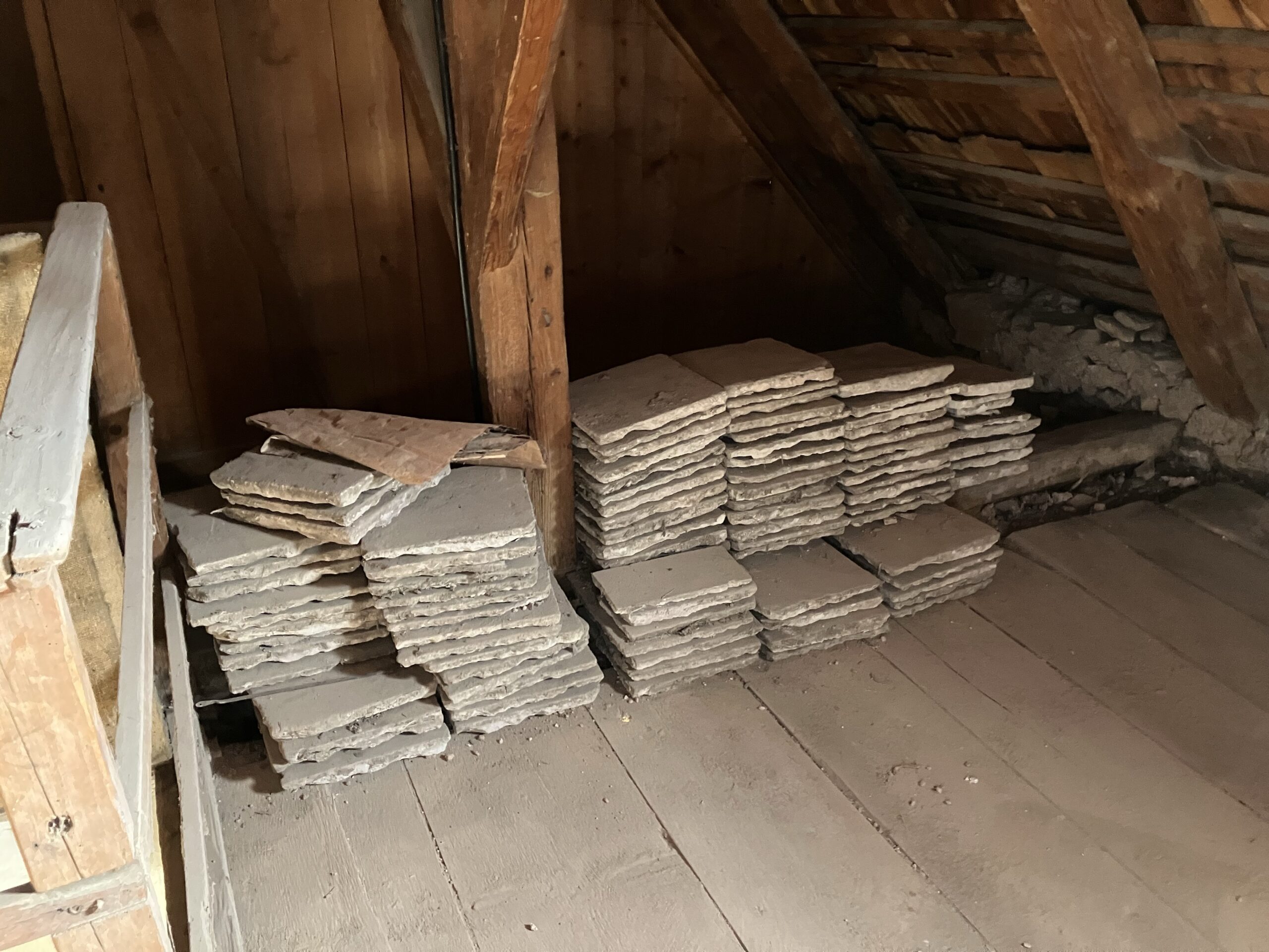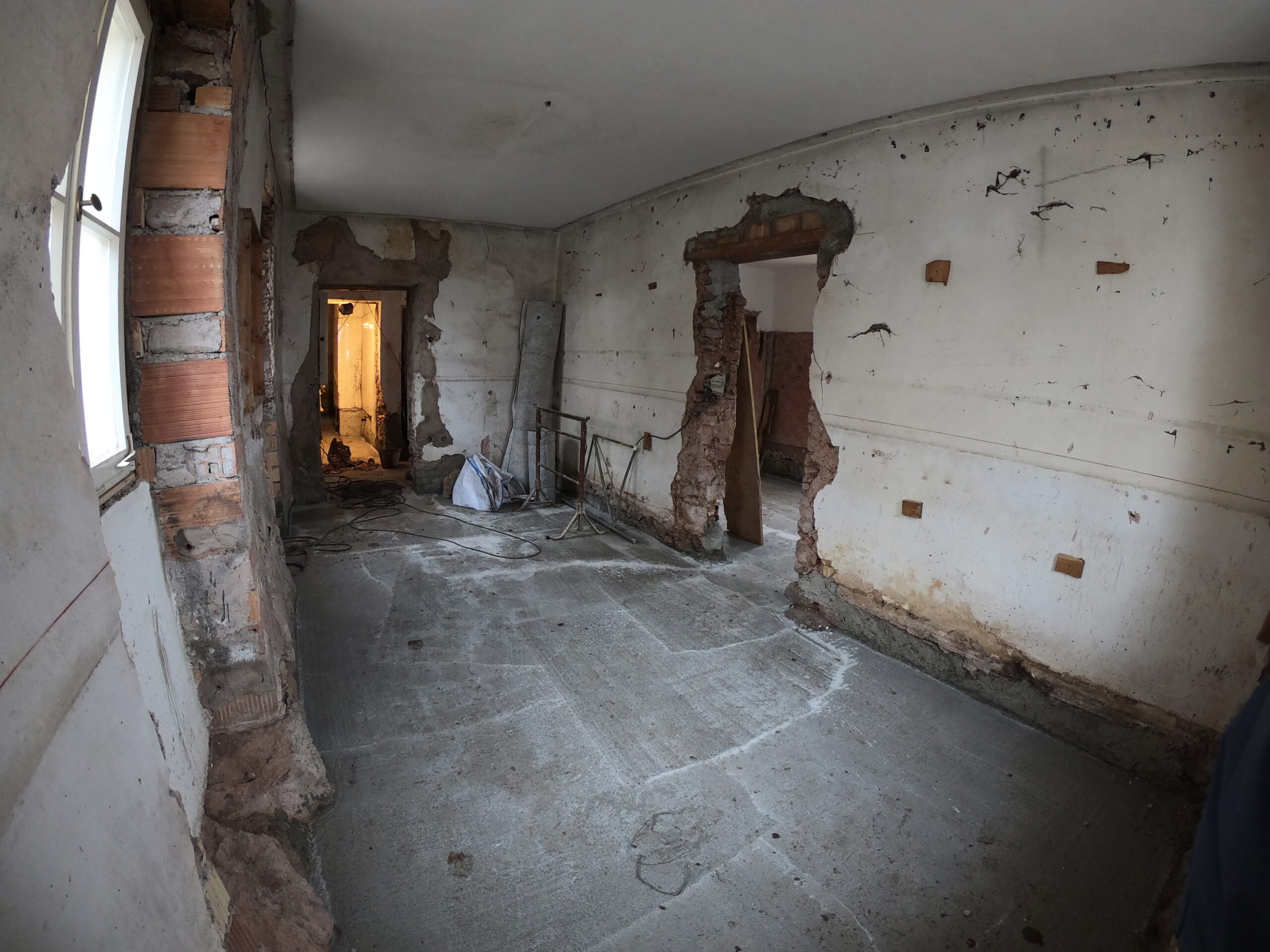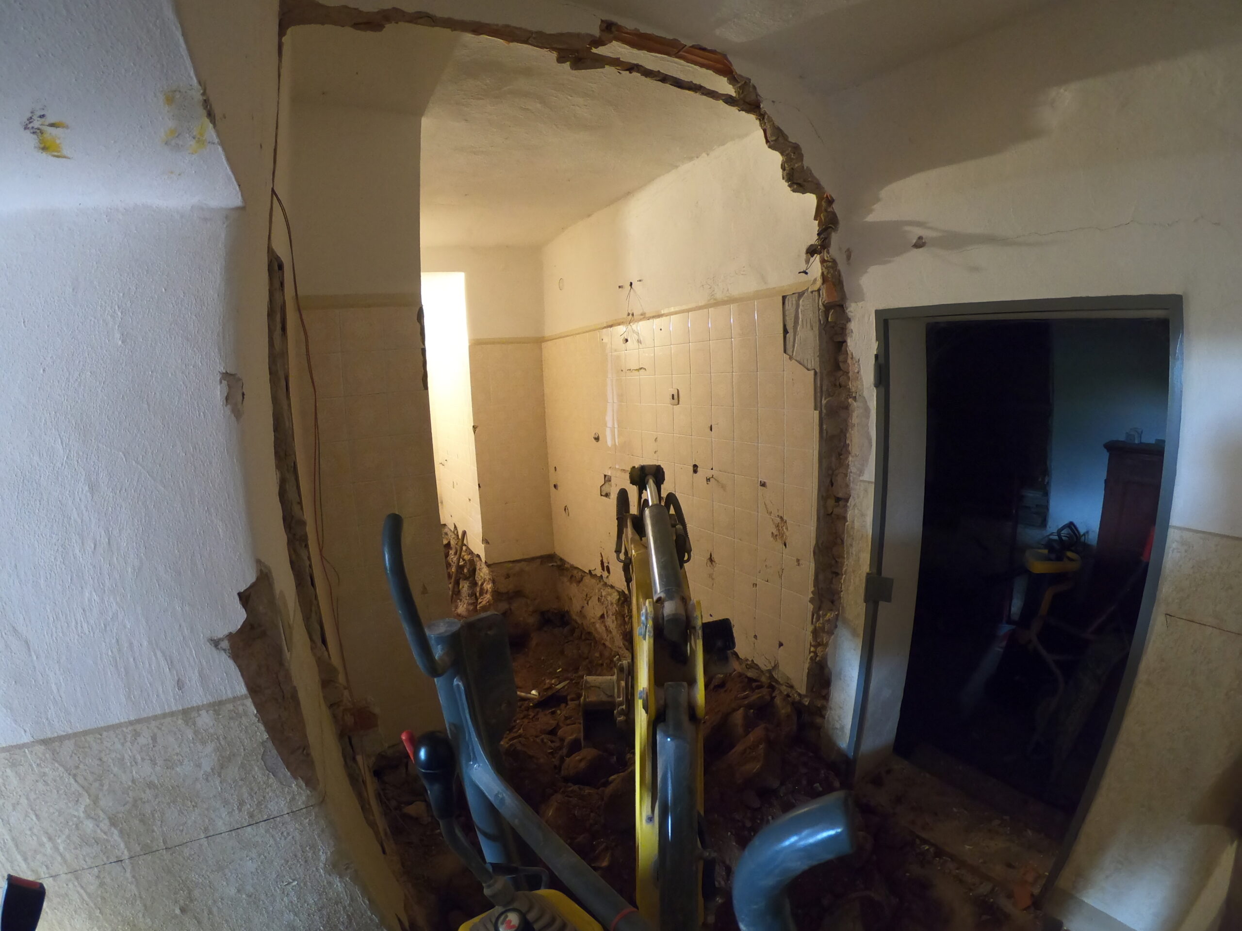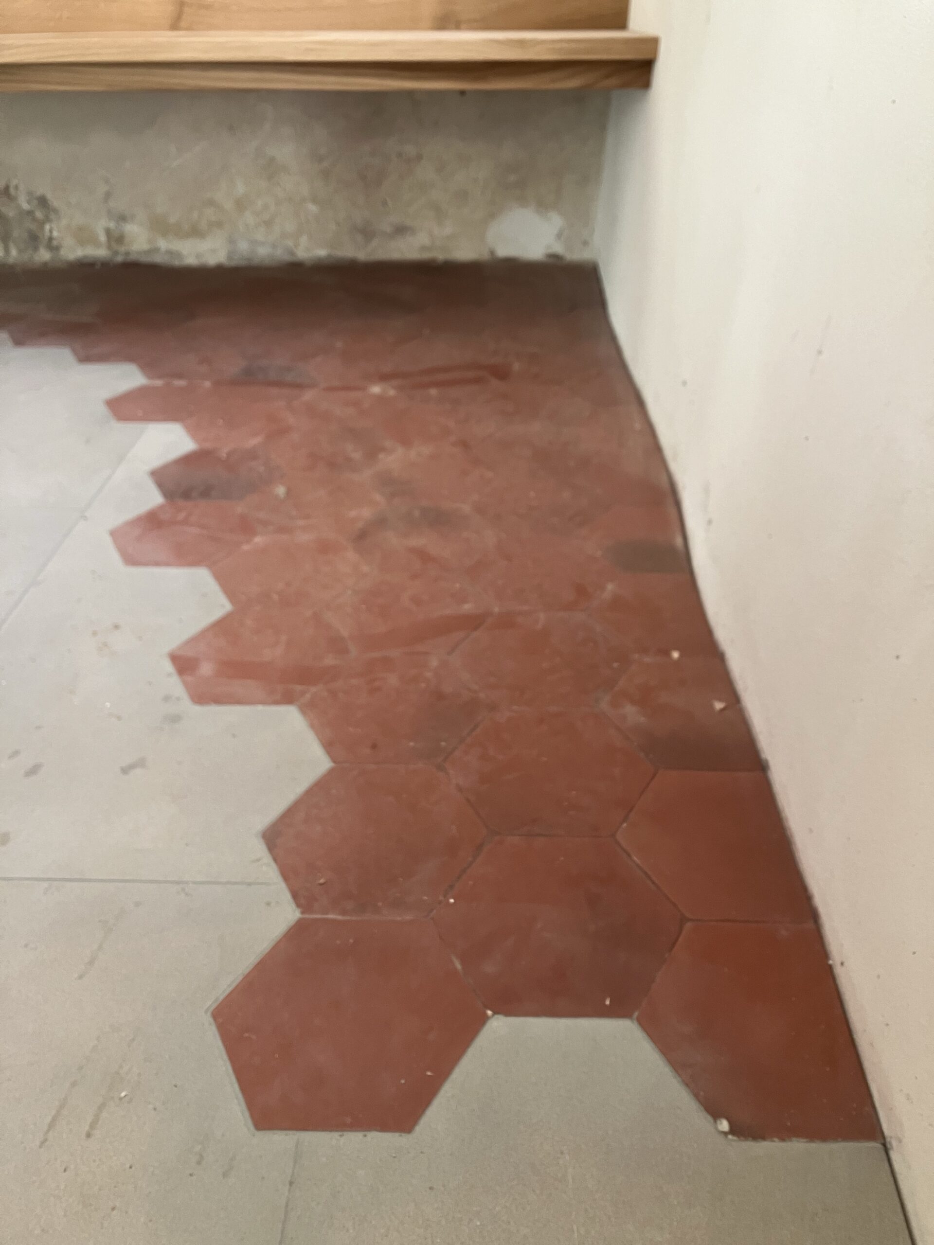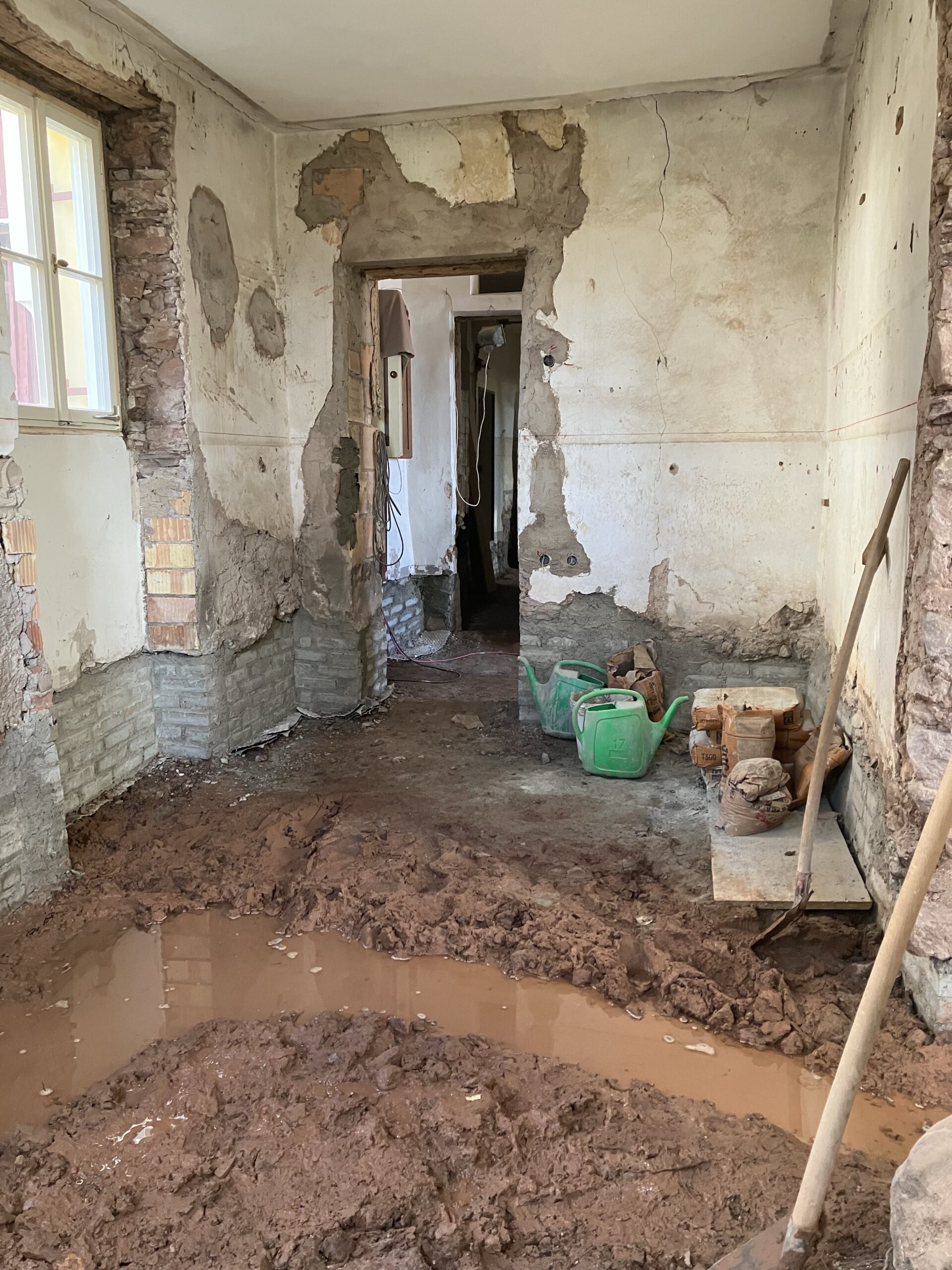 Verlegung Sandsteinplatten innen, neue Holzböden und Fließen
