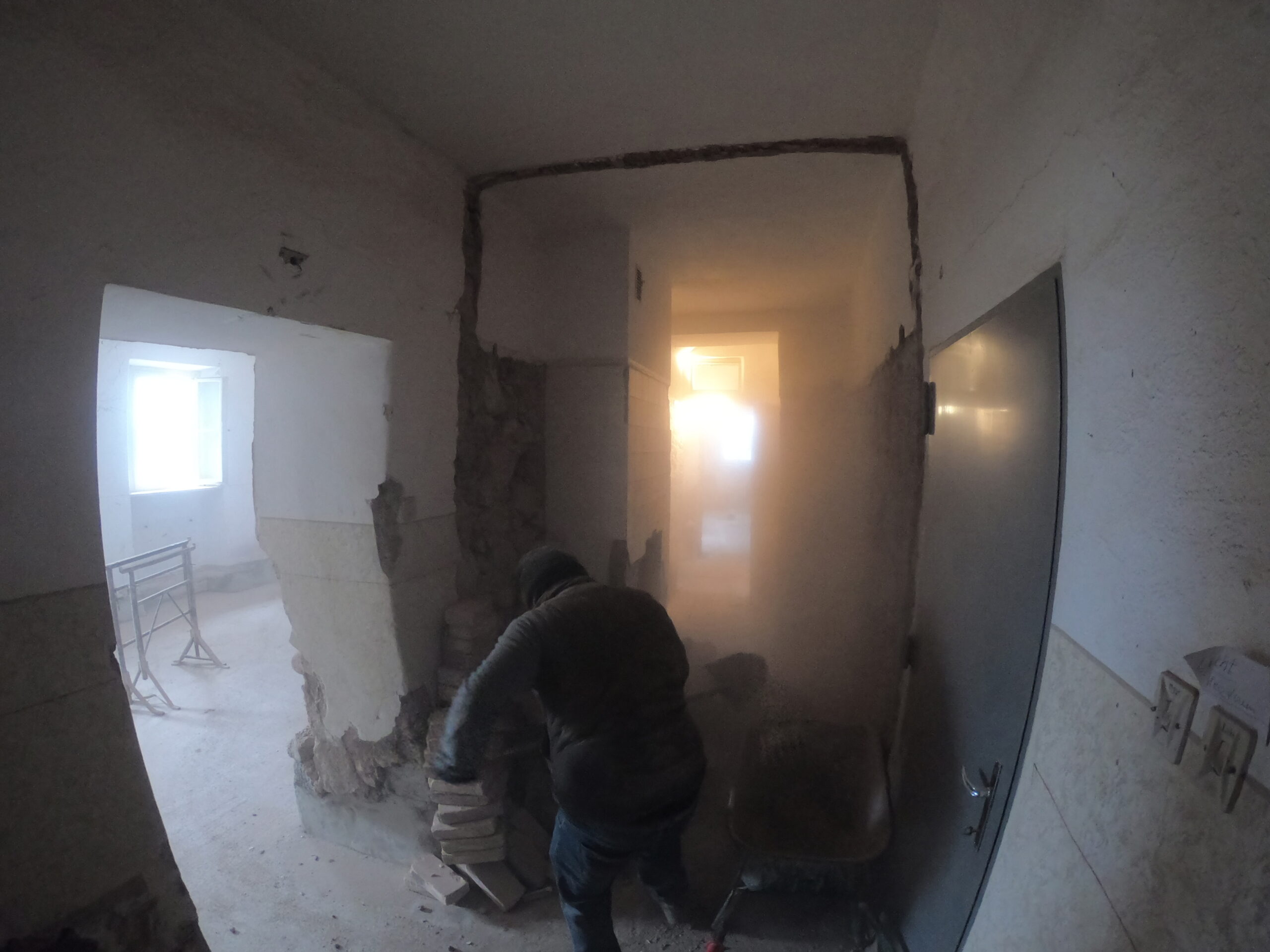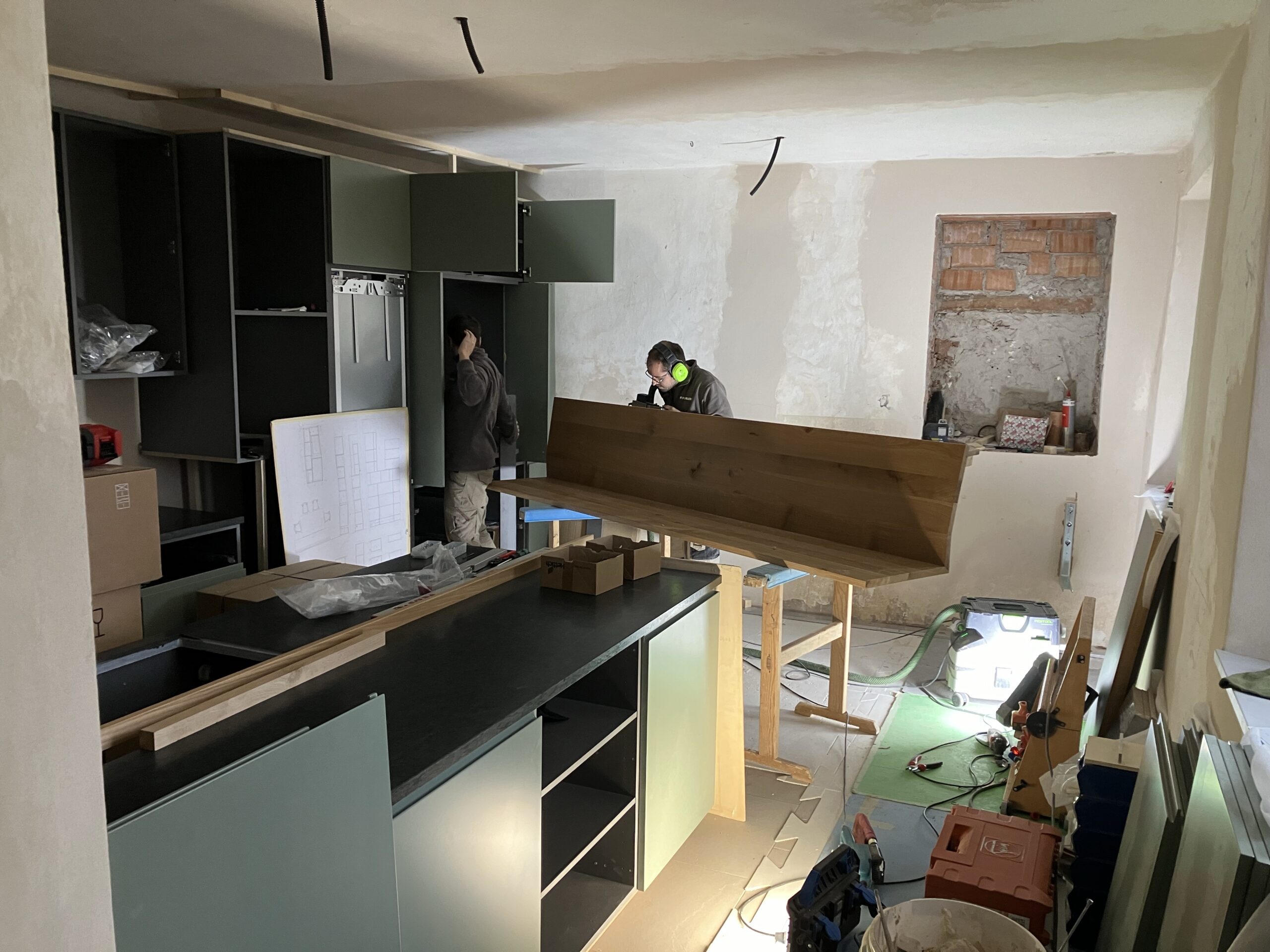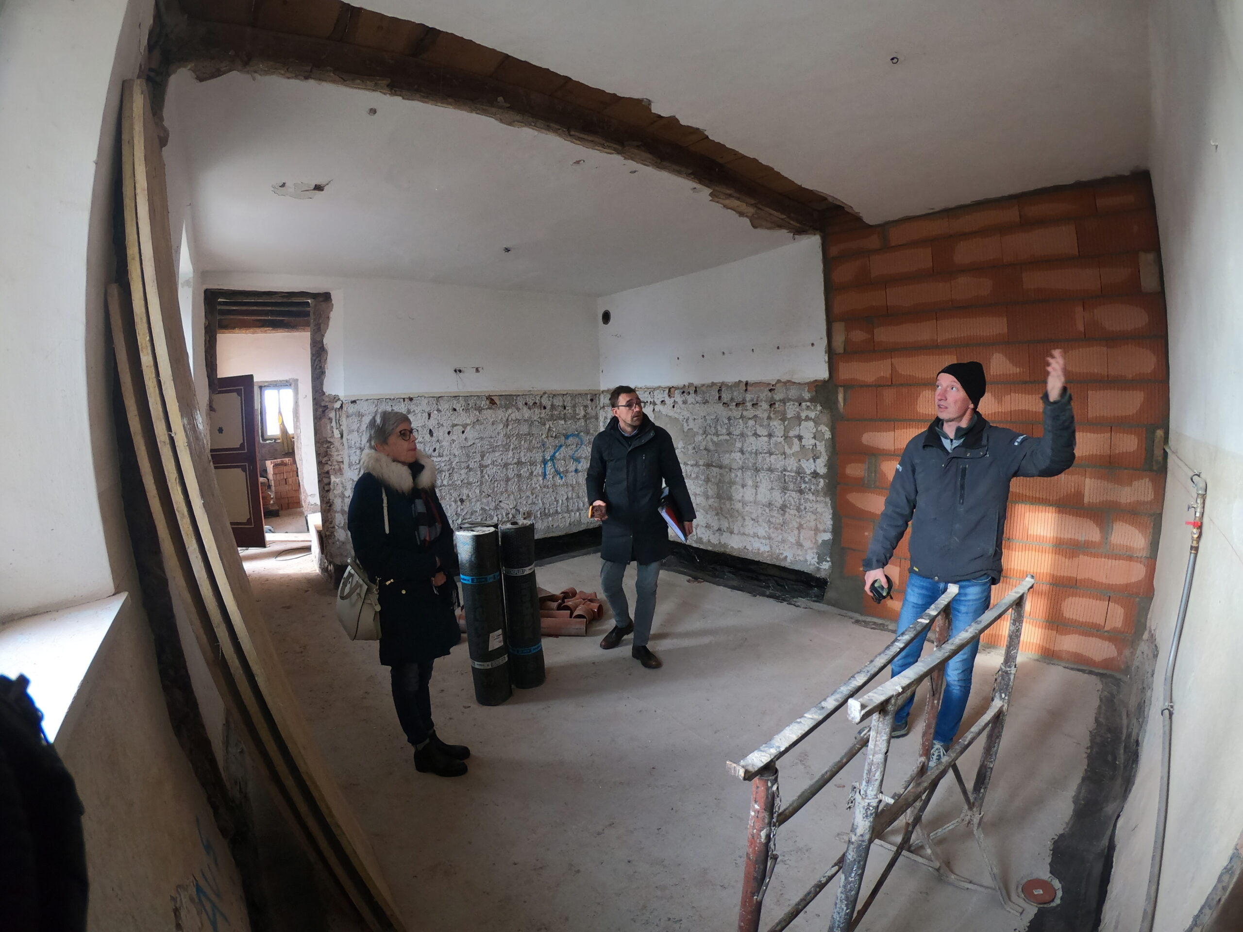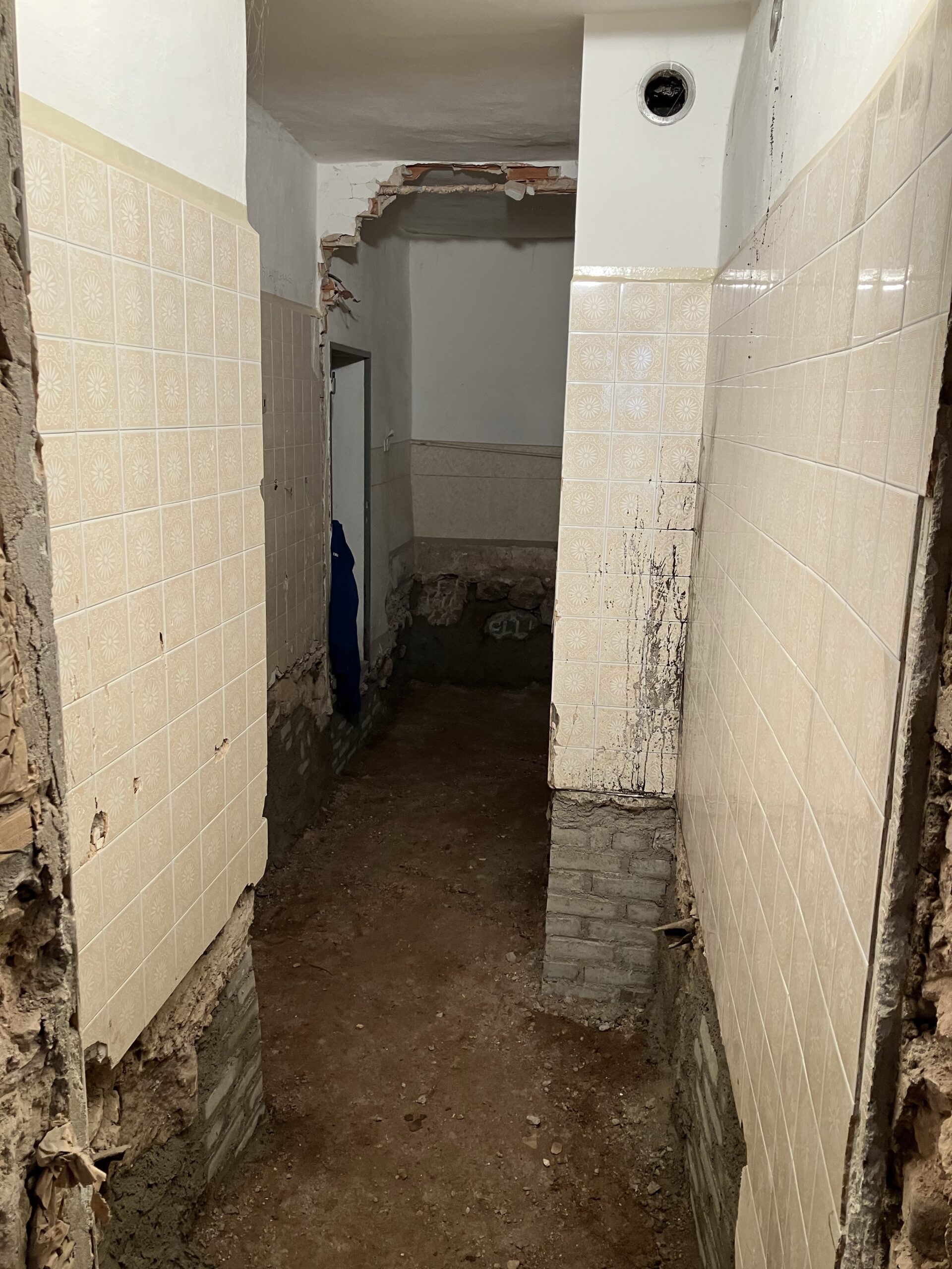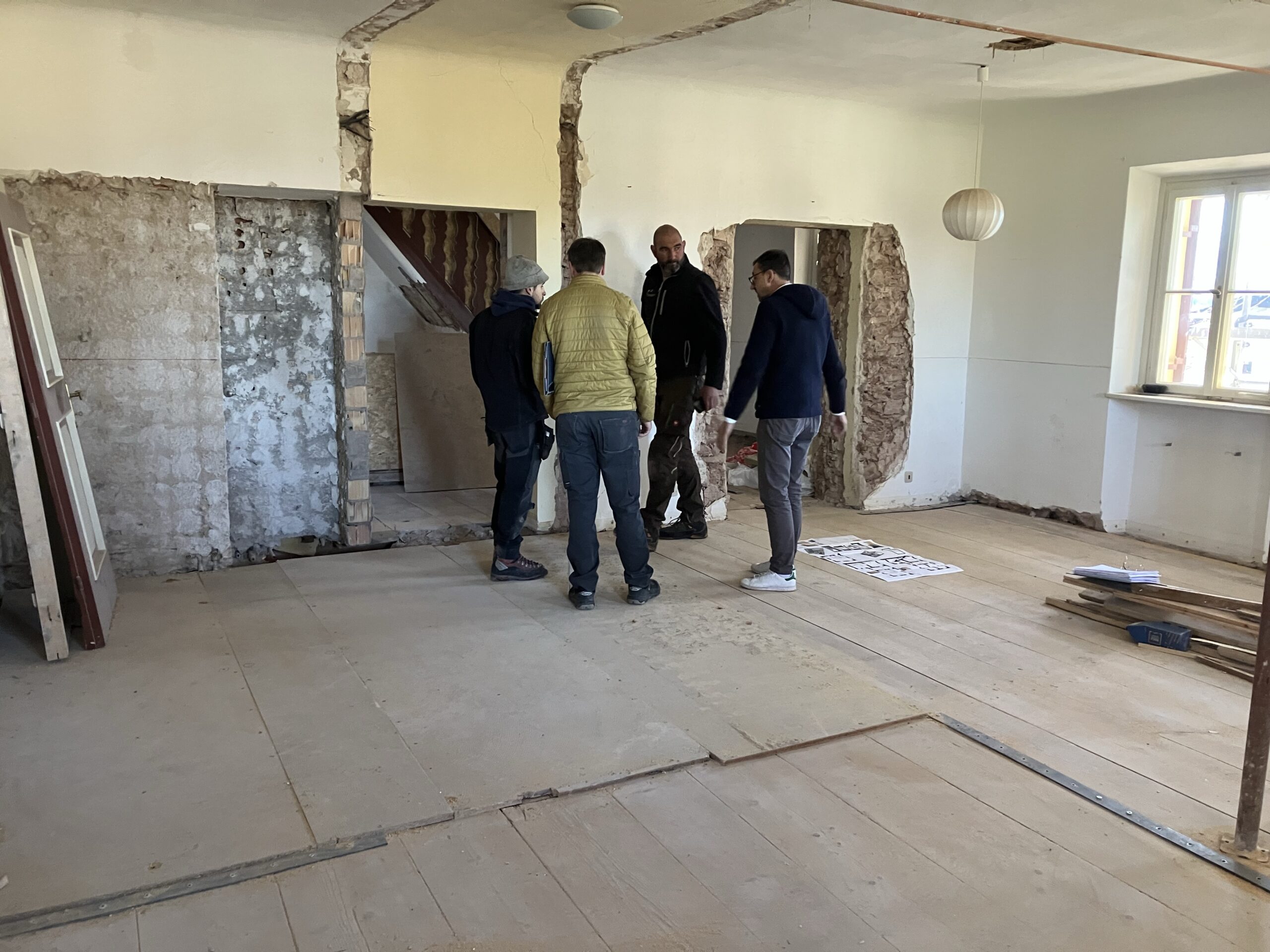 Verlegung Sandsteinplatten innen, neue Holzböden und Fließen