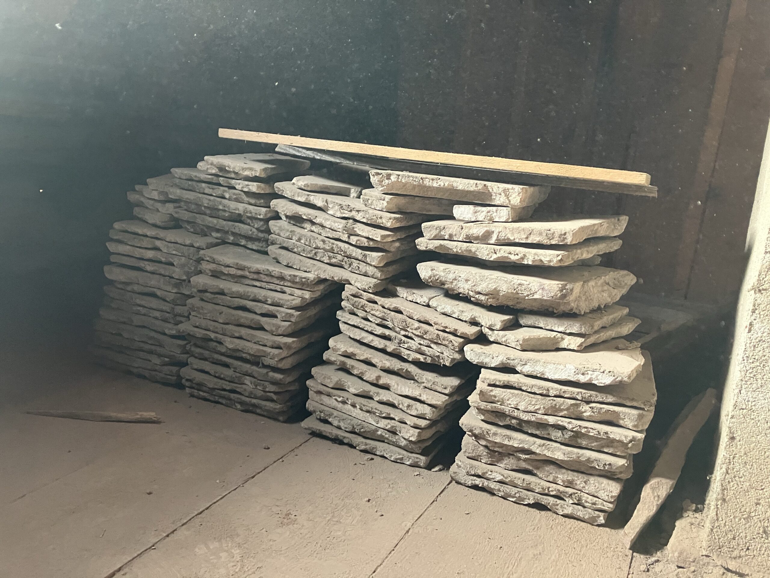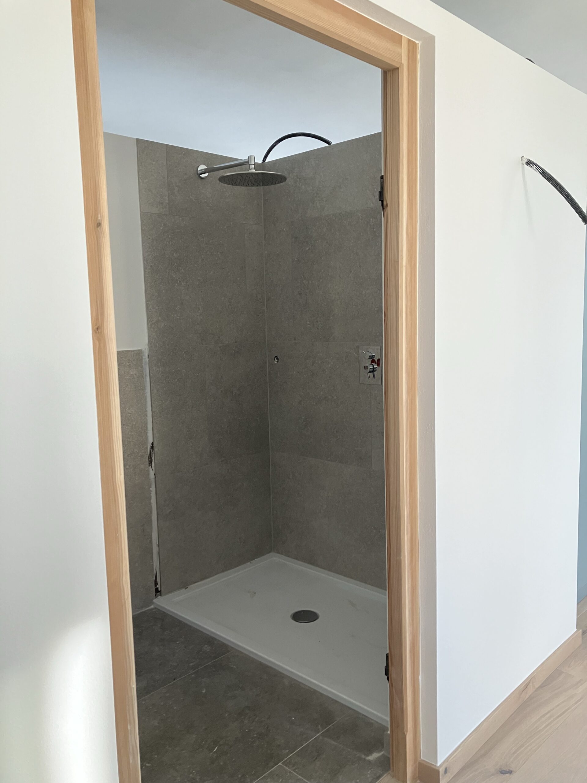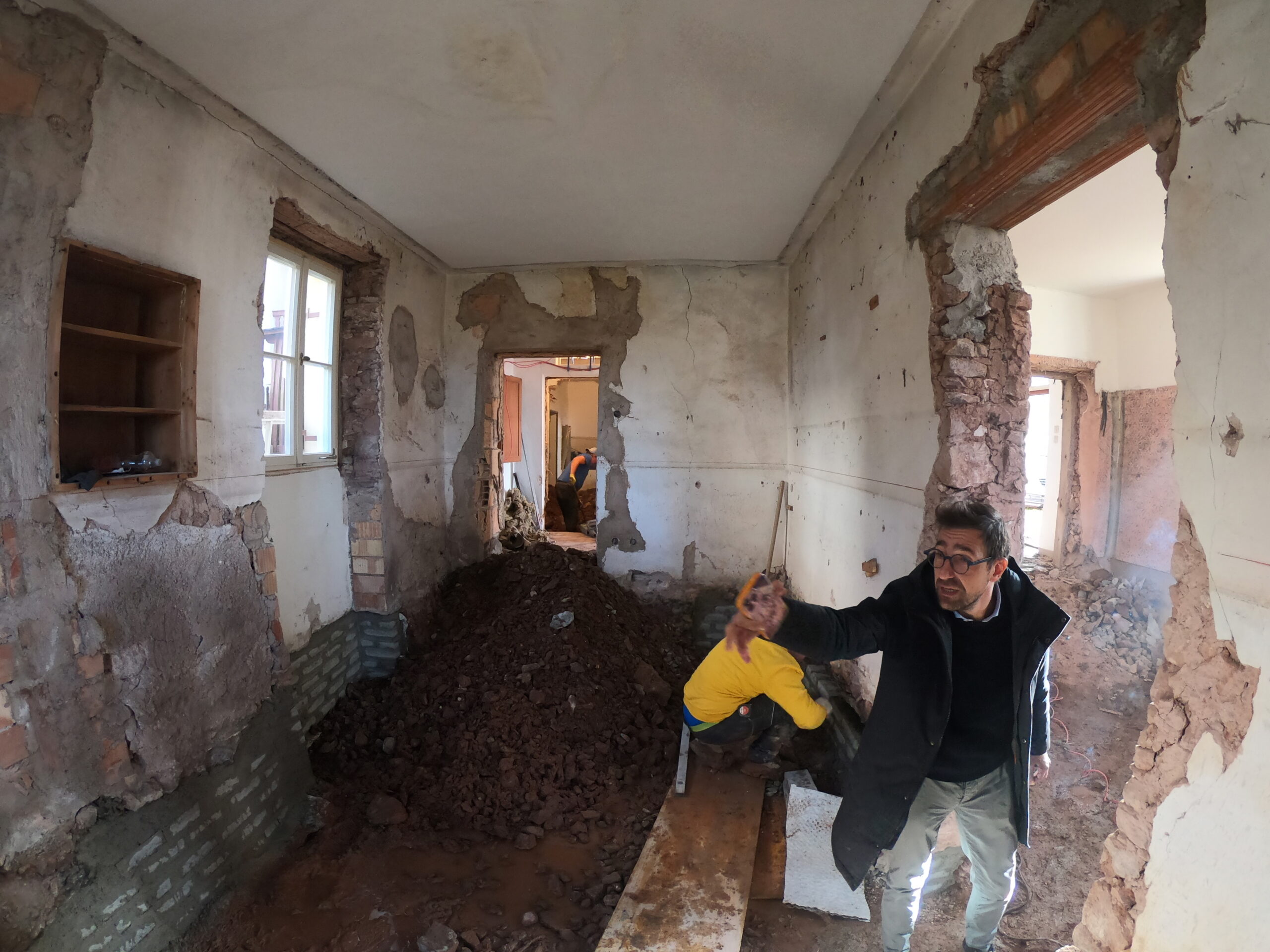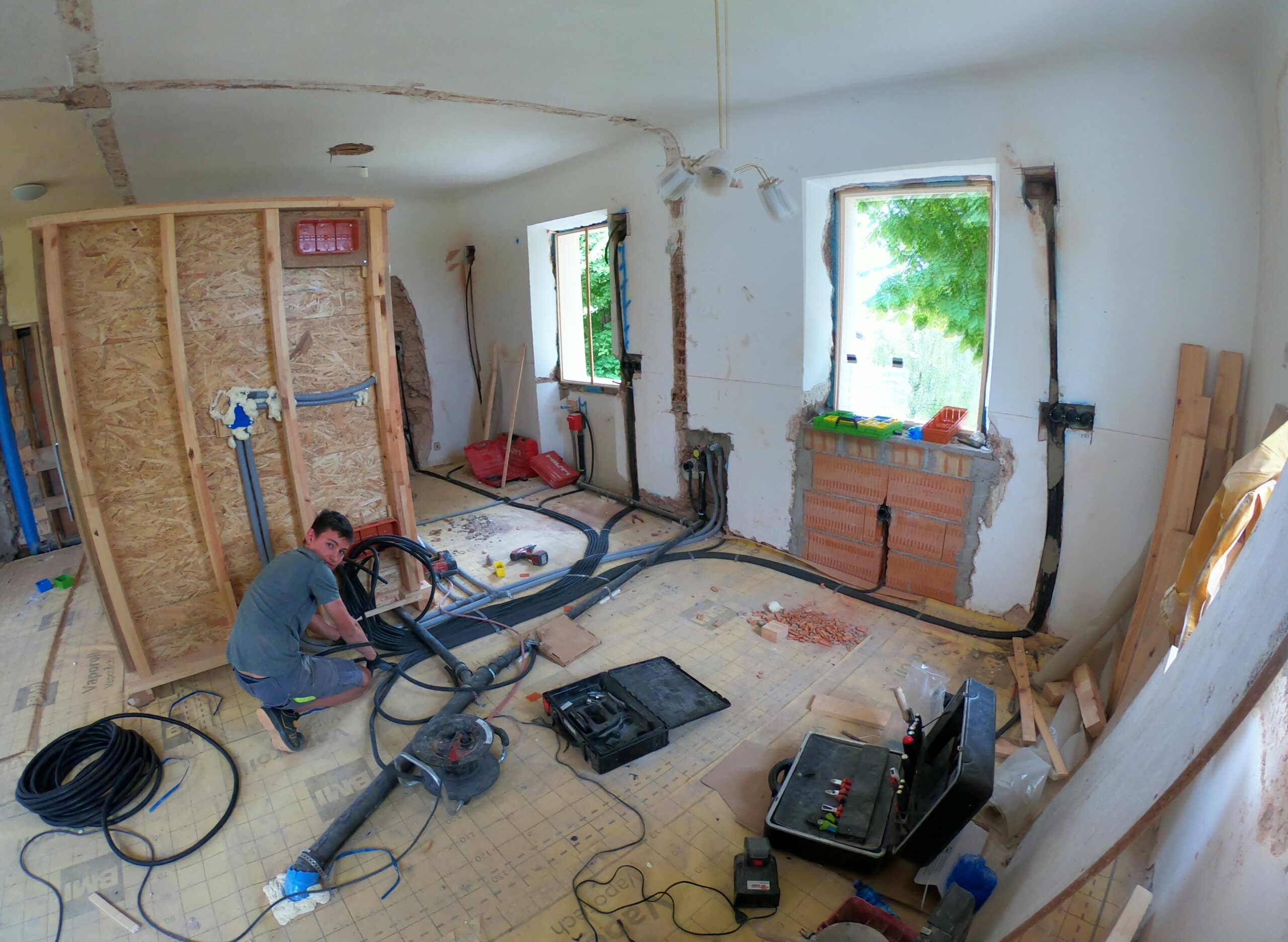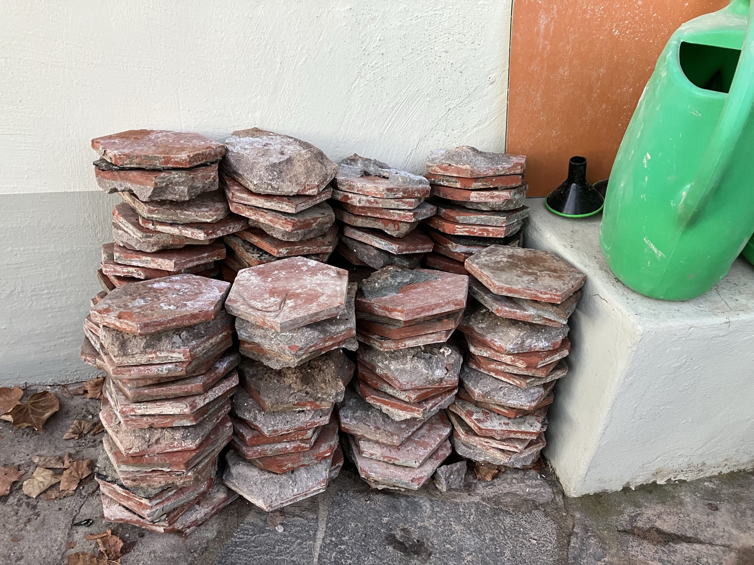 Verlegung Sandsteinplatten innen, neue Holzböden und Fließen