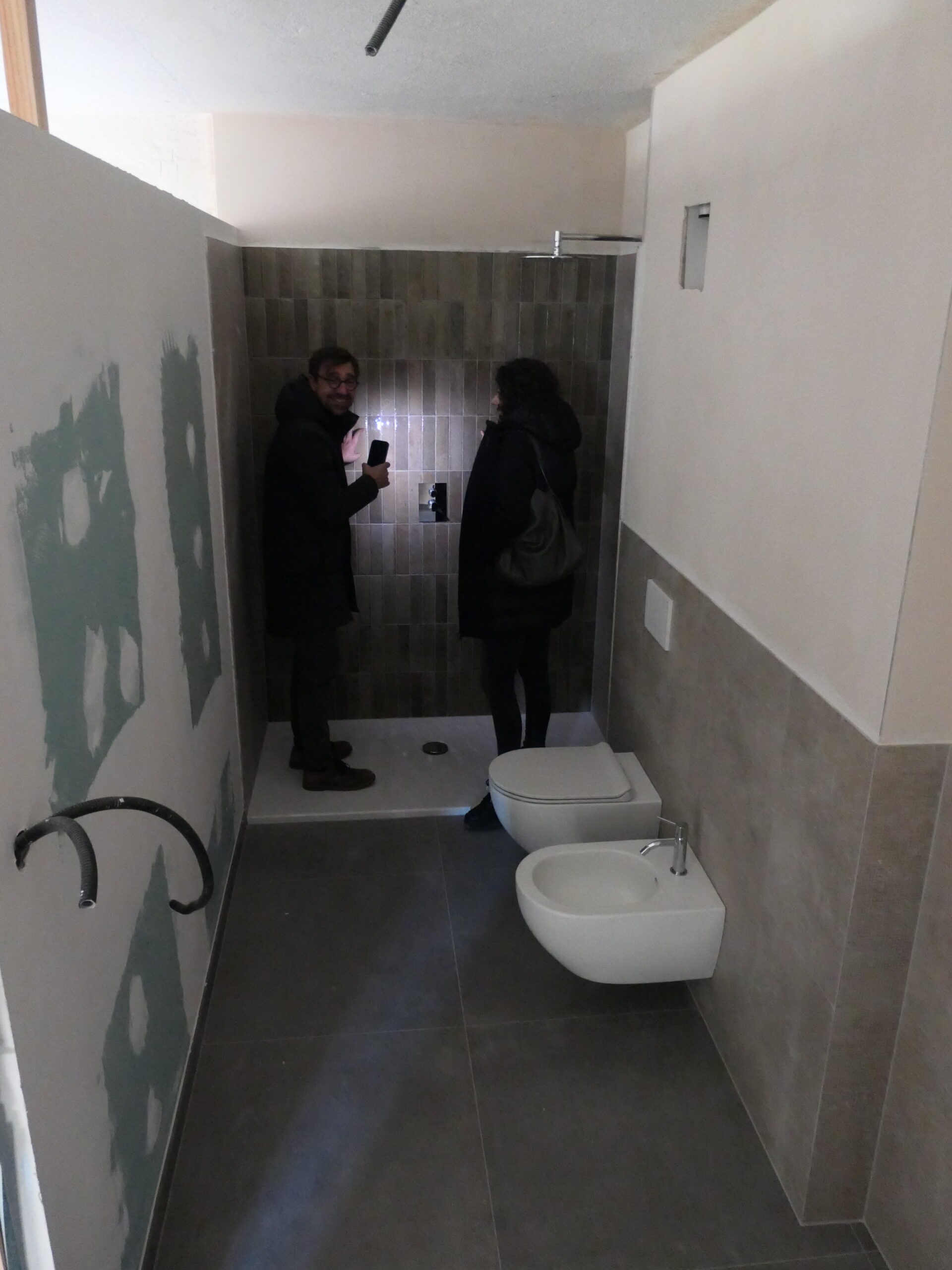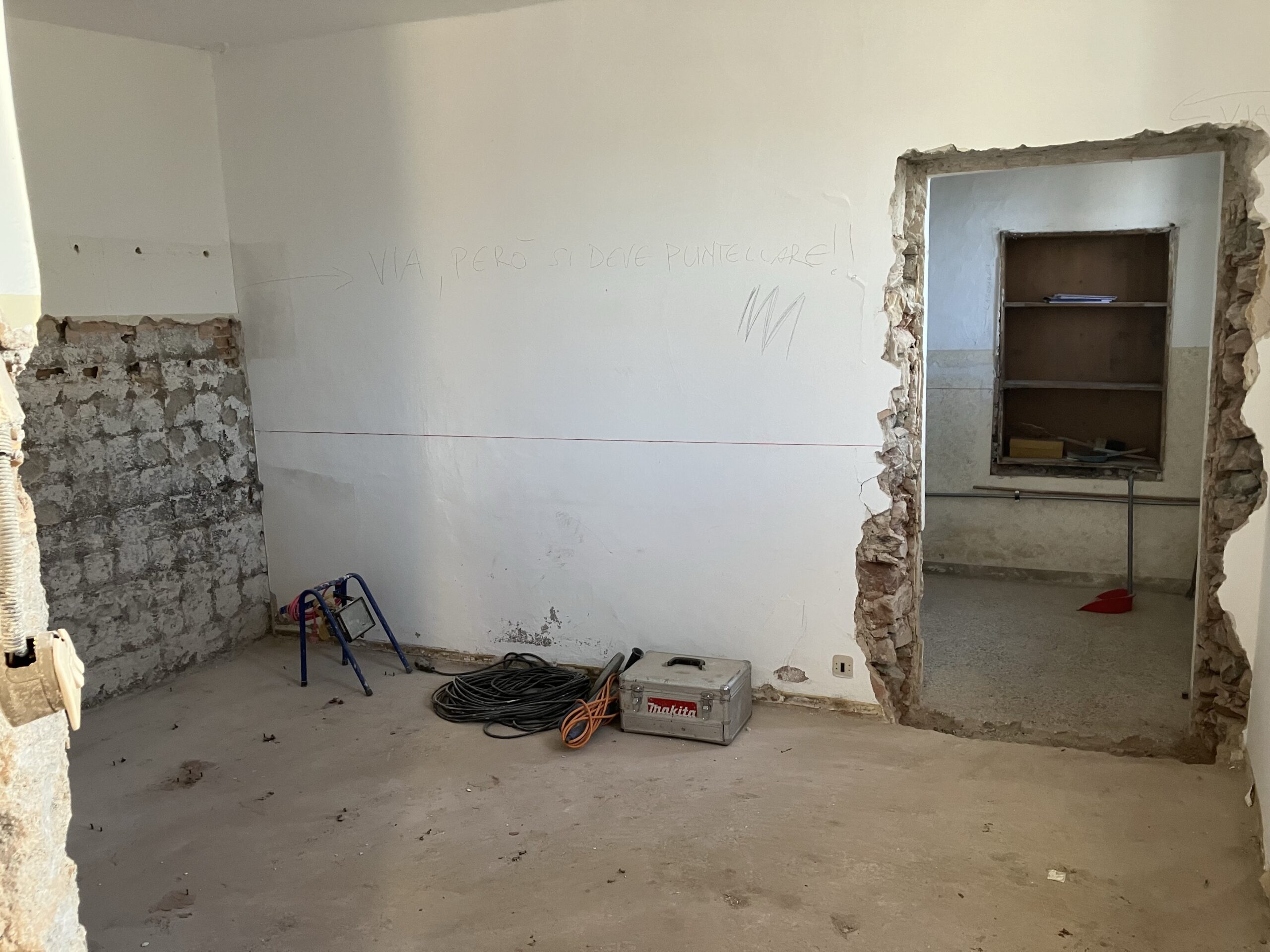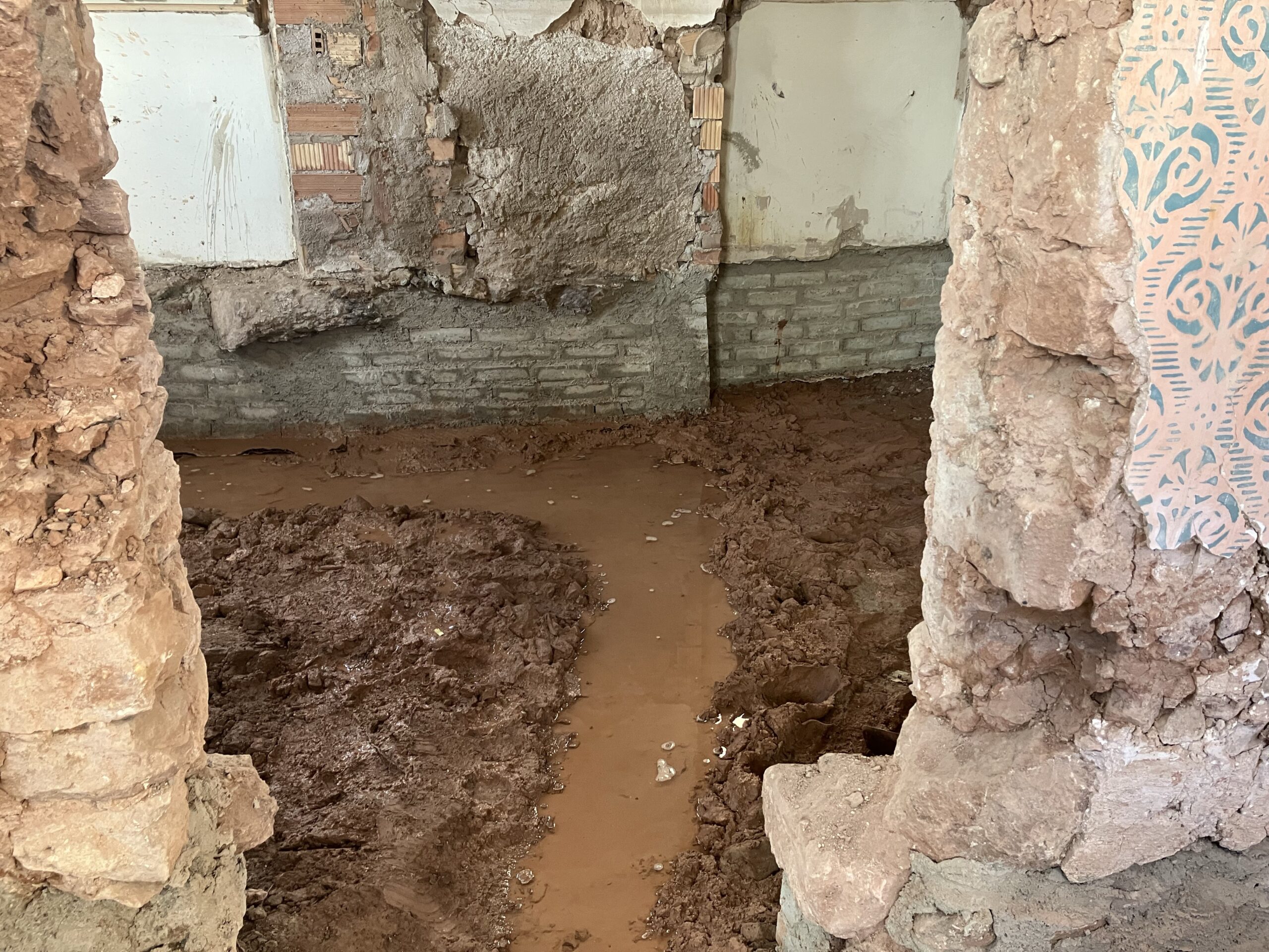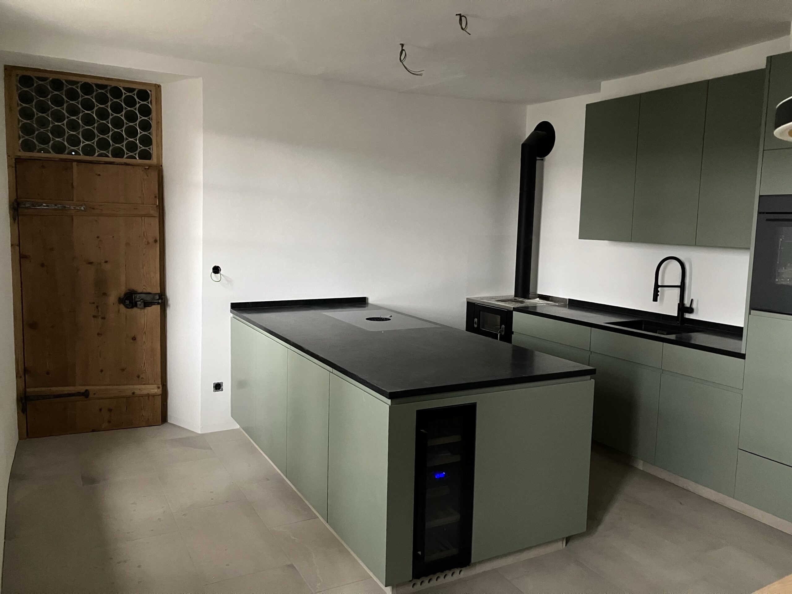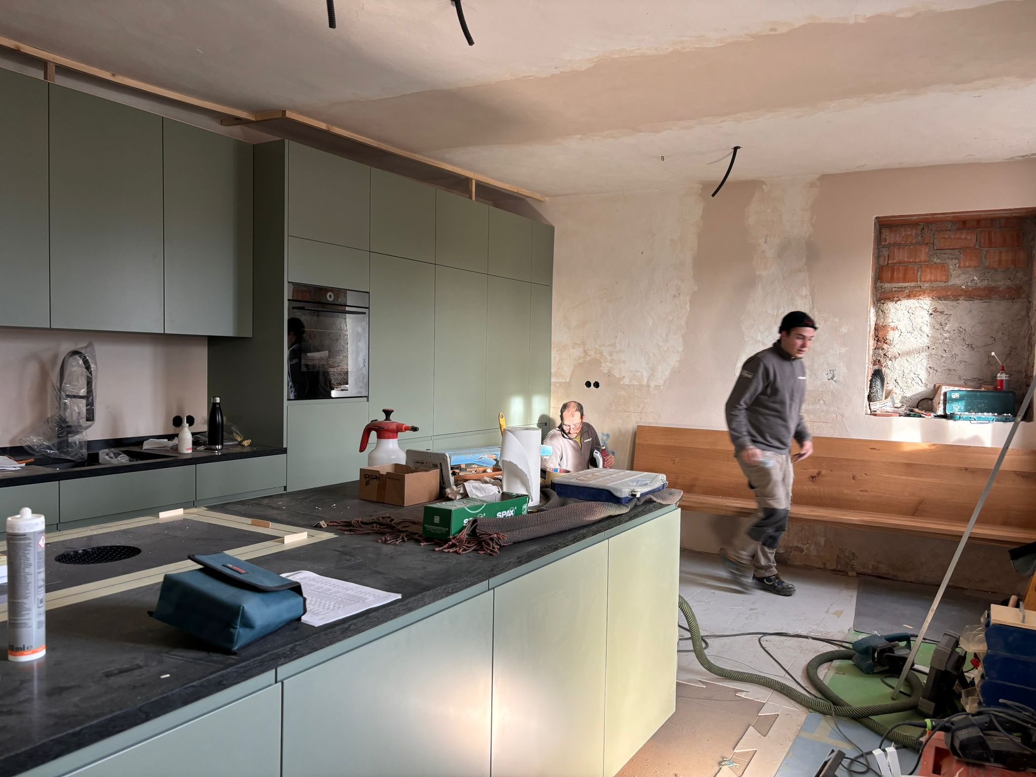 Verlegung Sandsteinplatten innen, neue Holzböden und Fließen