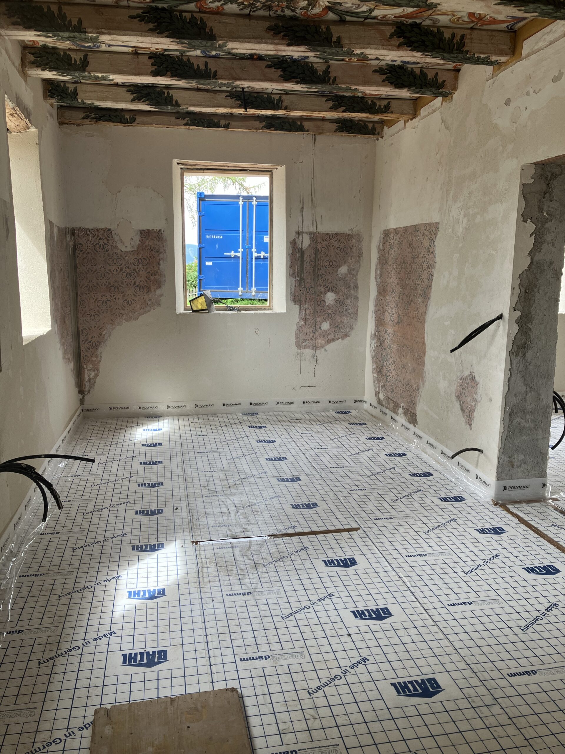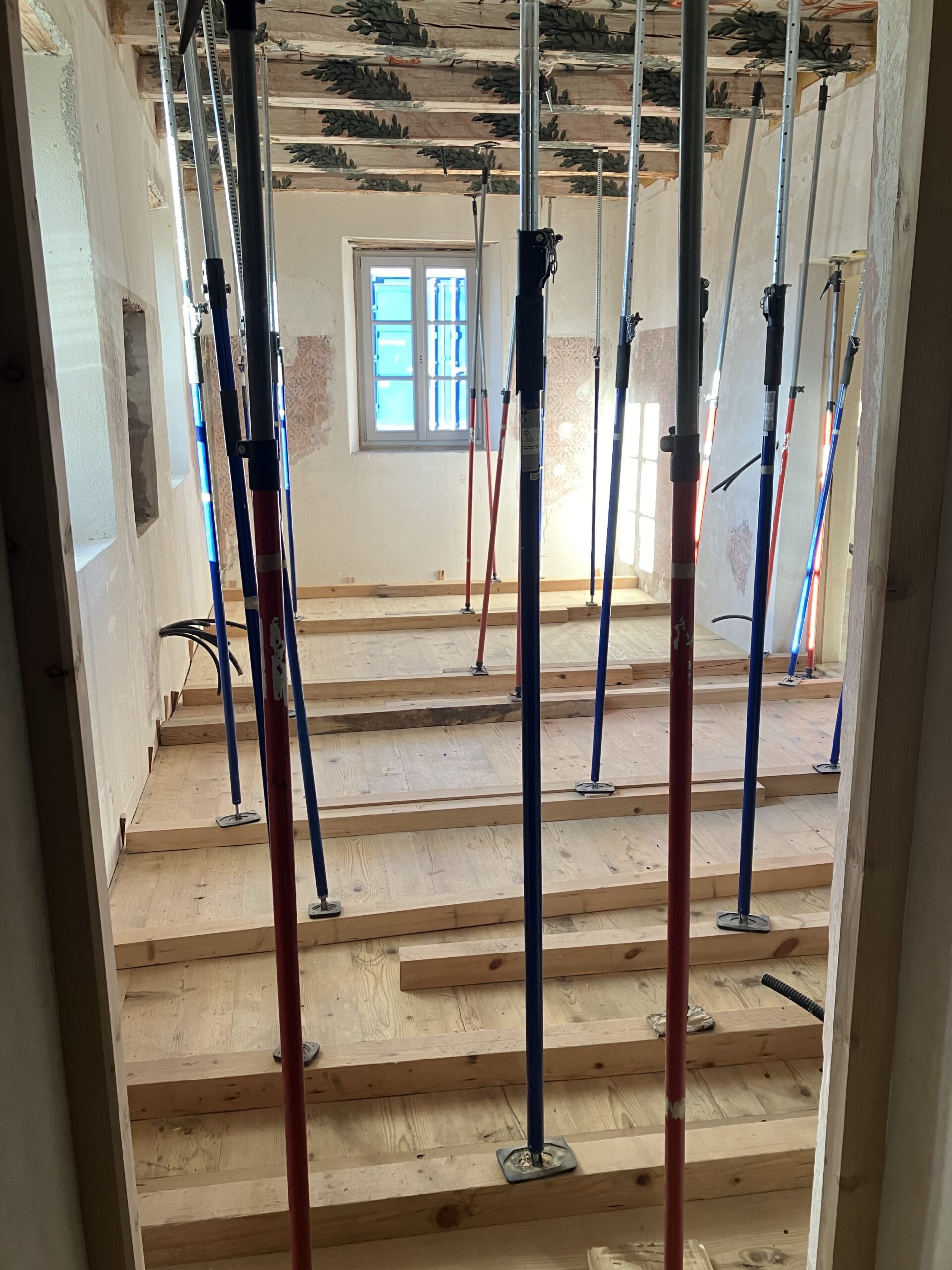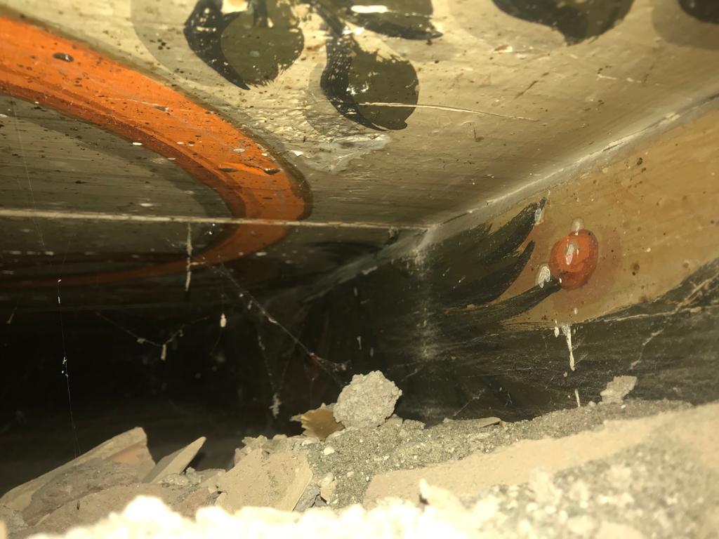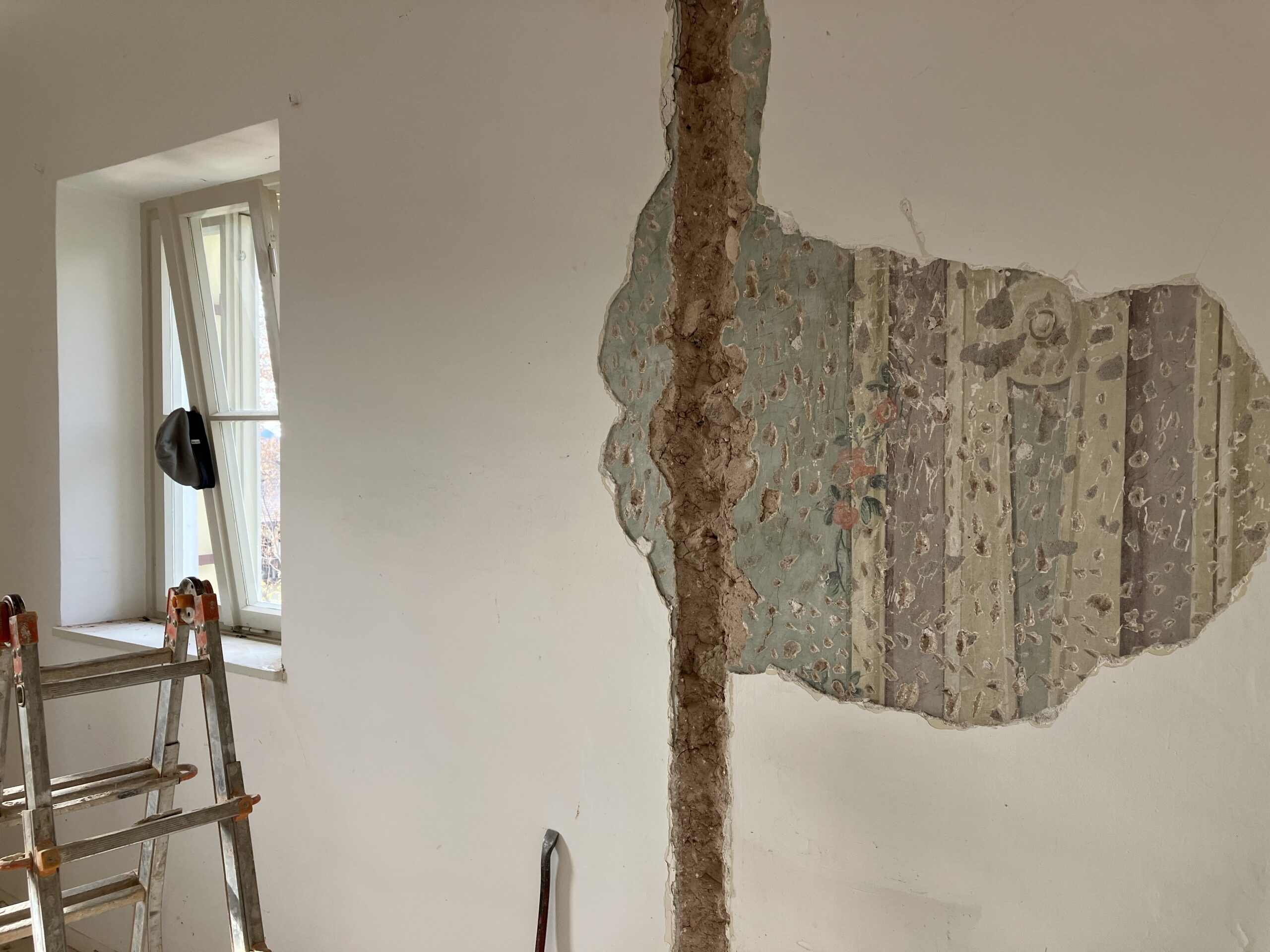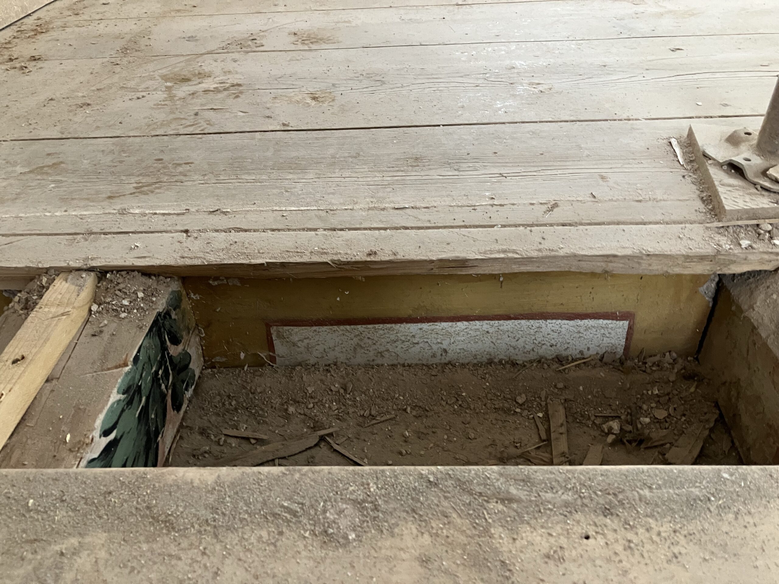 Entdeckung Deckenbemalungen, “Hic fui”, Wandbemalungen, Bodenfließen, zugemauertes Fenster