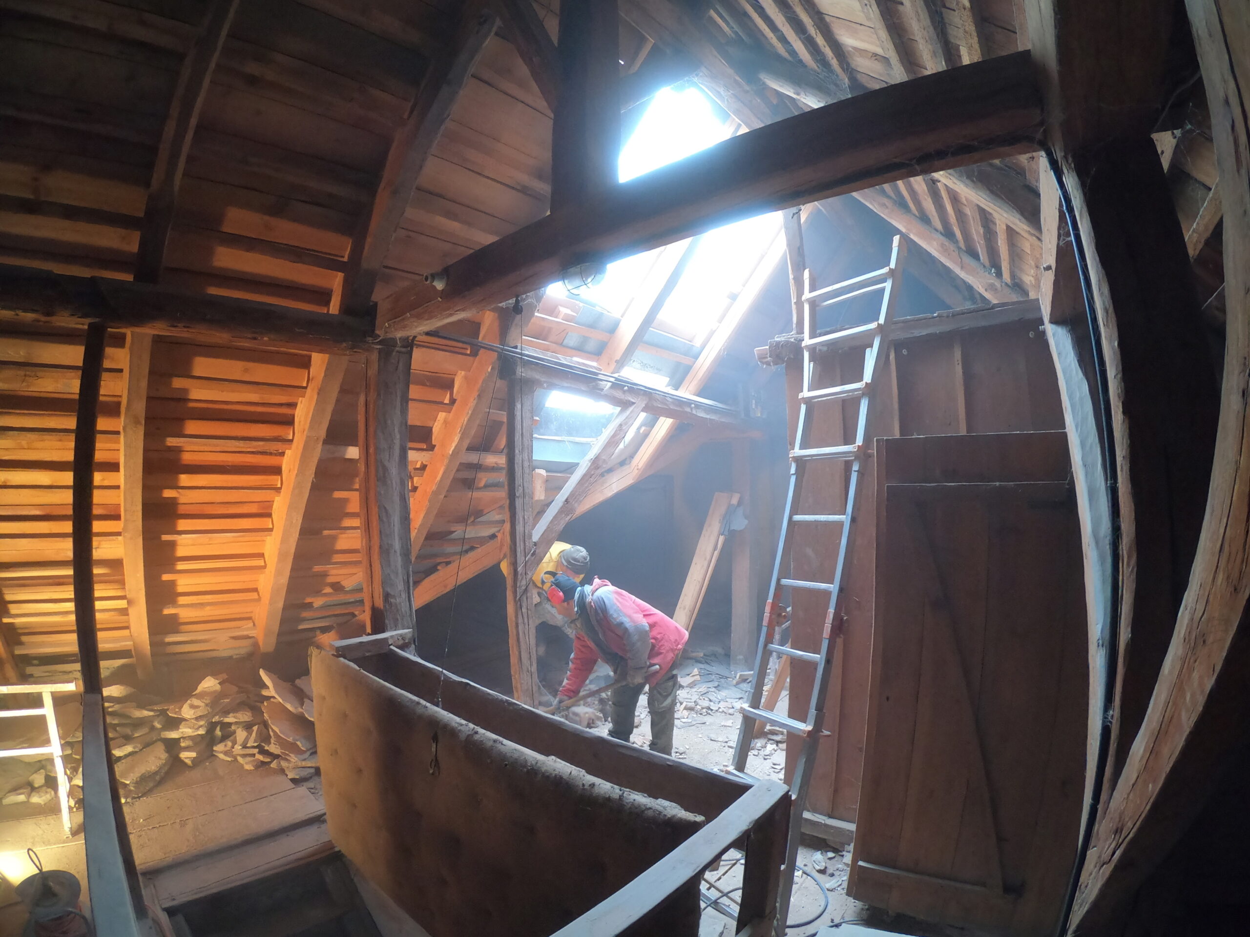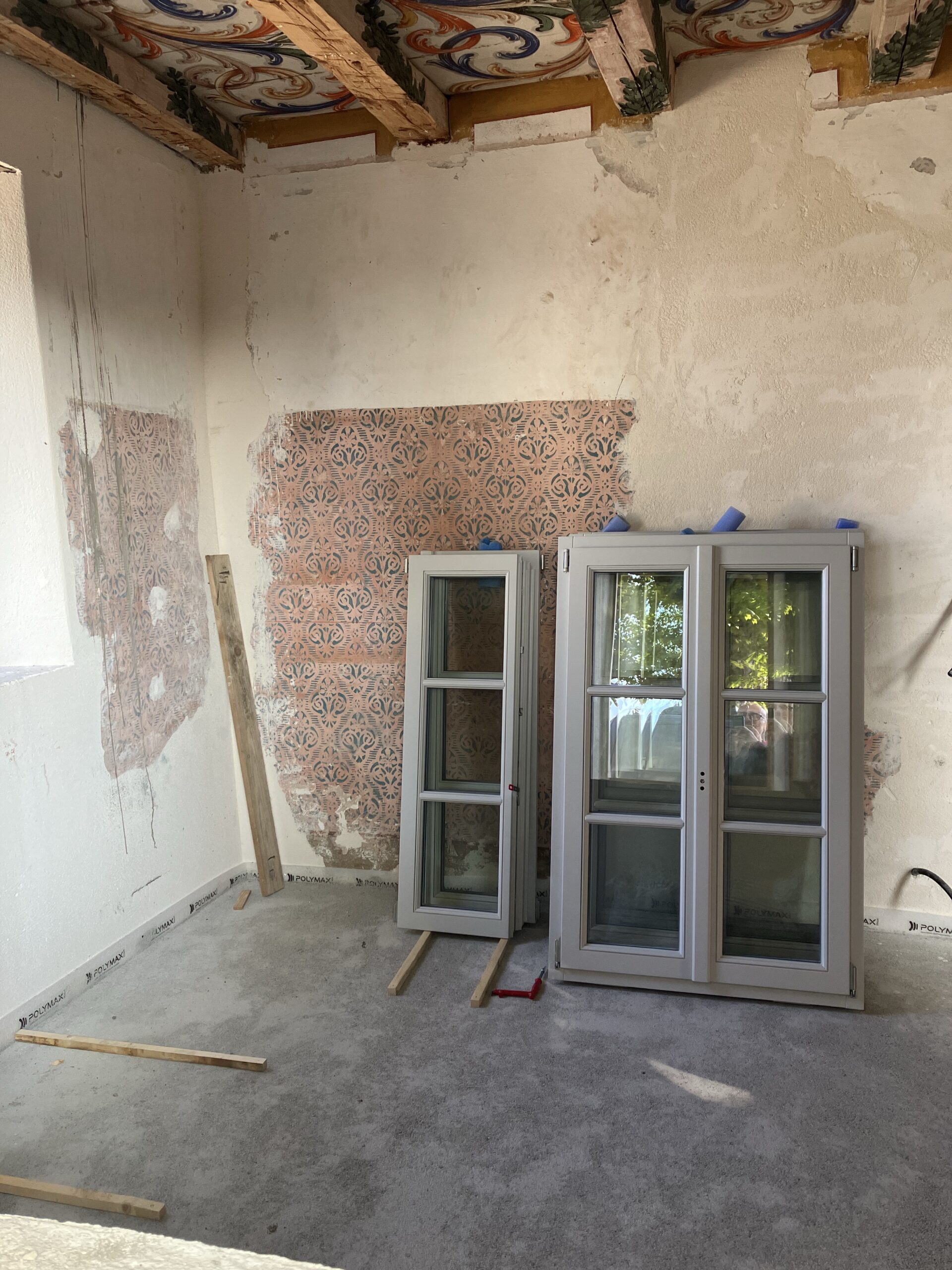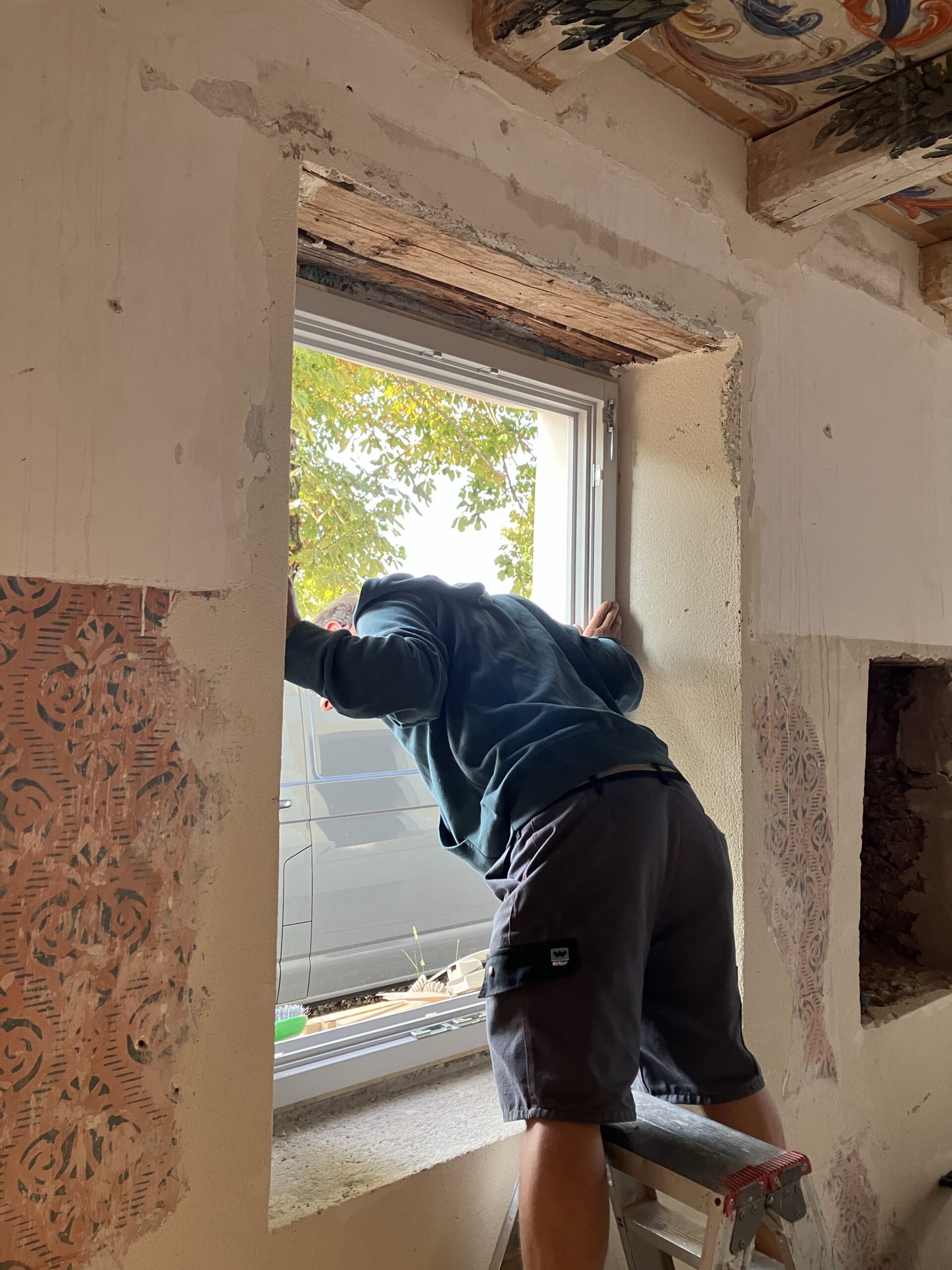 Montage der neuen und der historischen Fenster