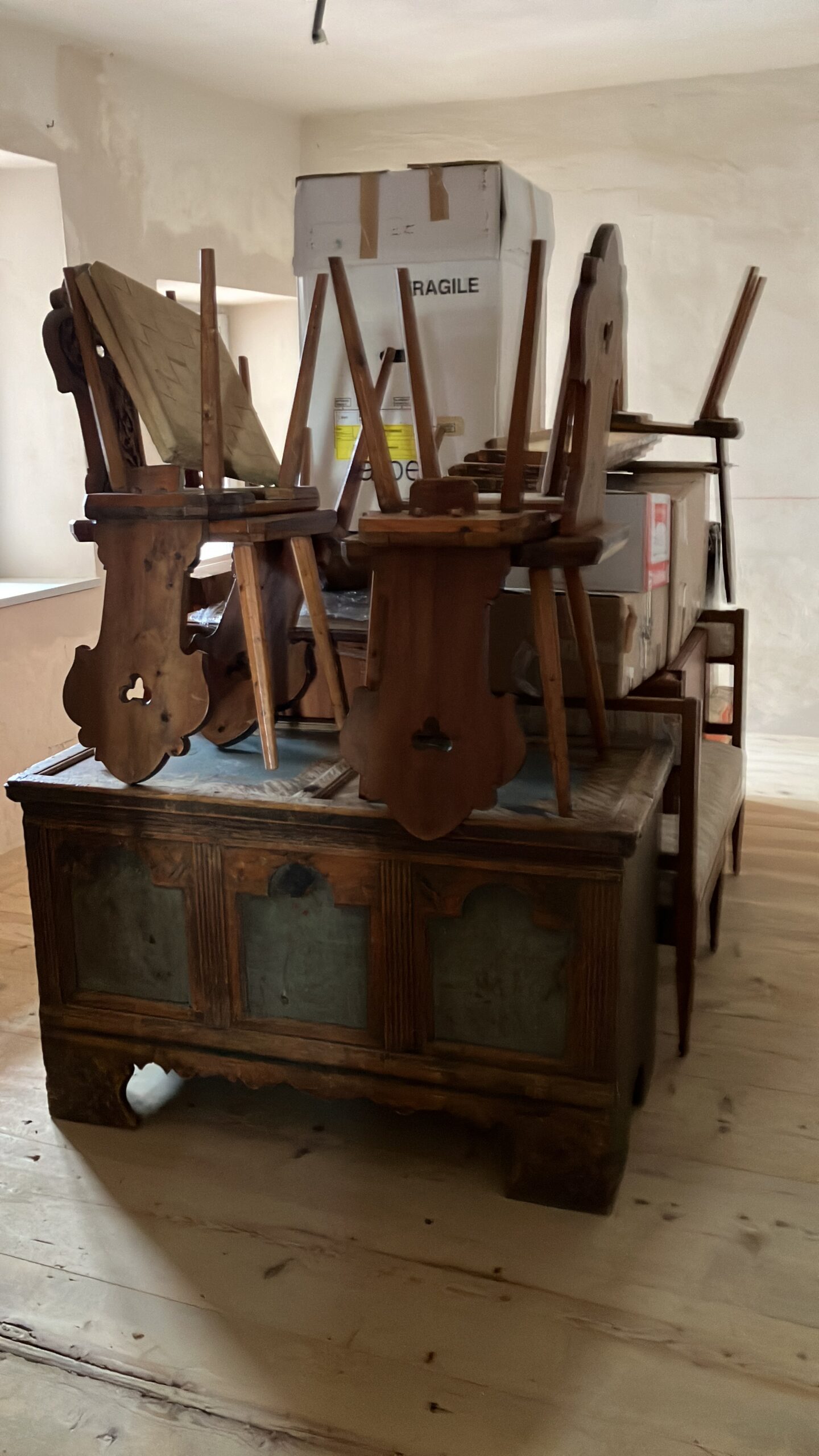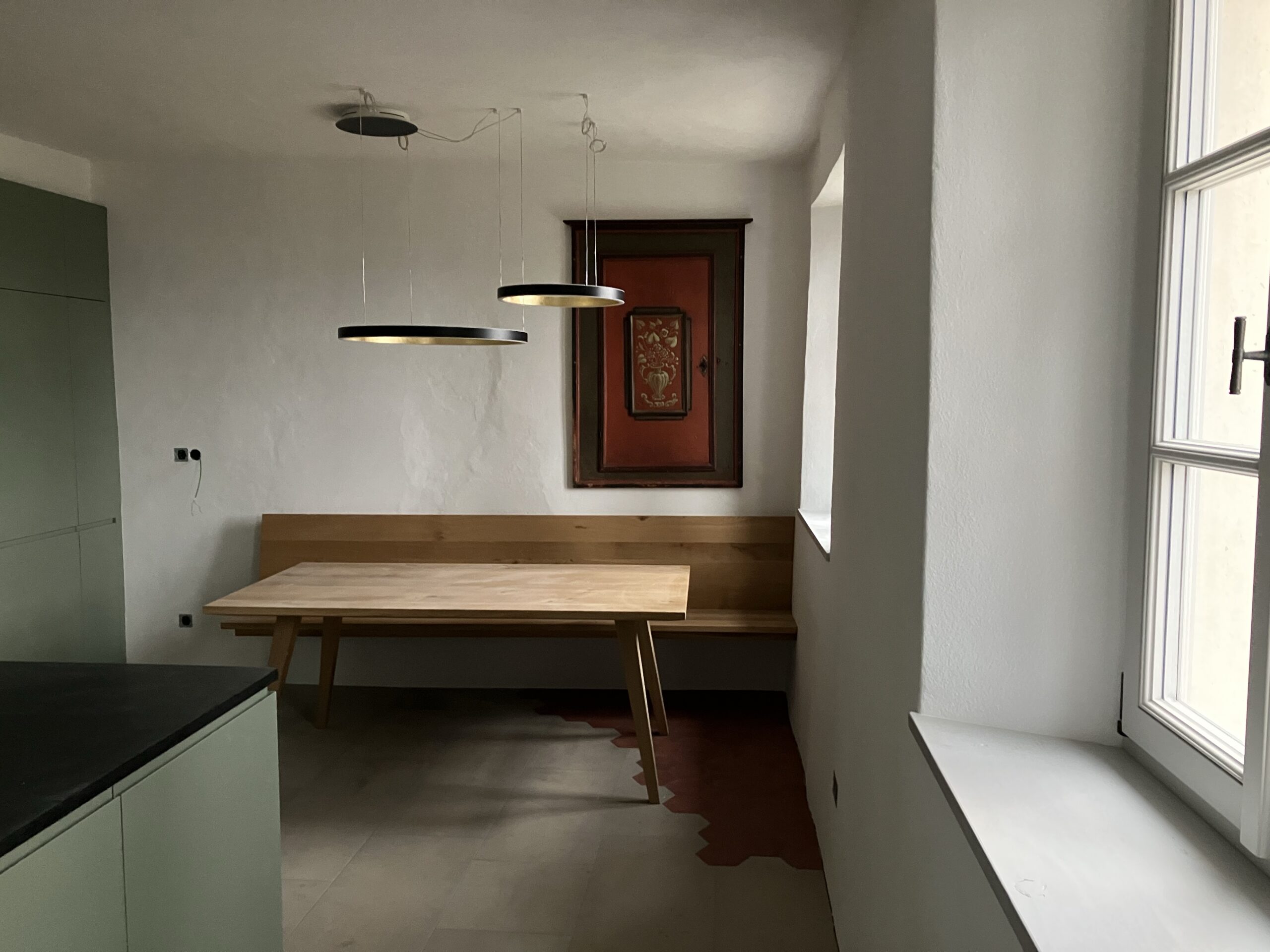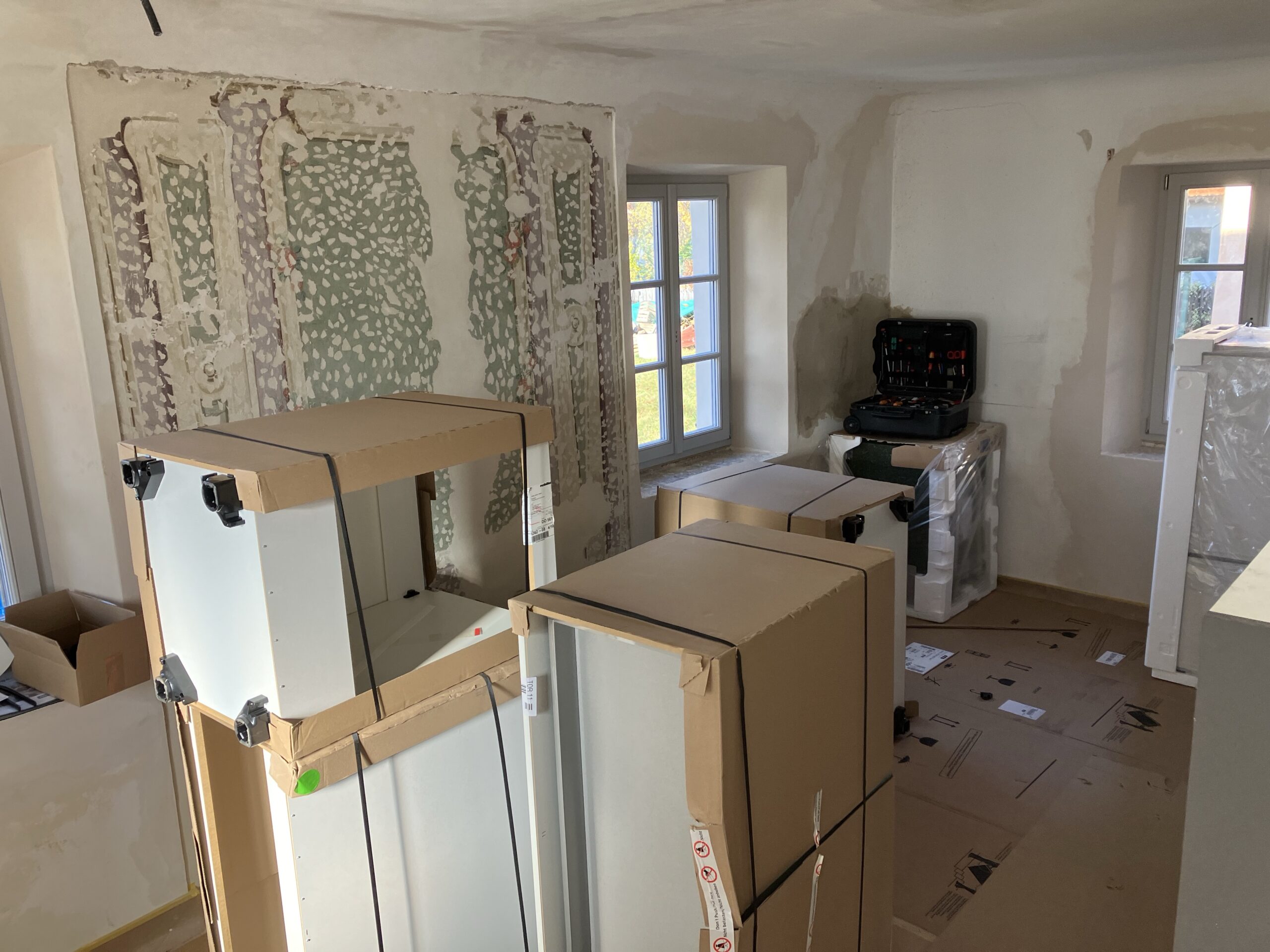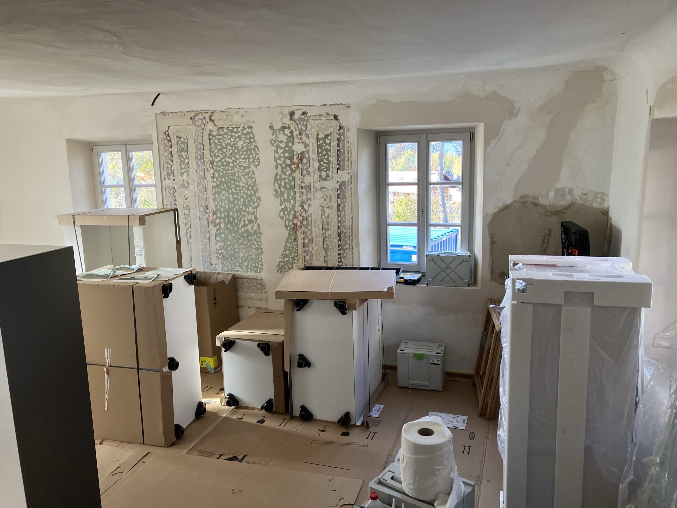 Einrichtung Wohnungen Robert und Johanna sowie Einsetzen Wappenscheibe