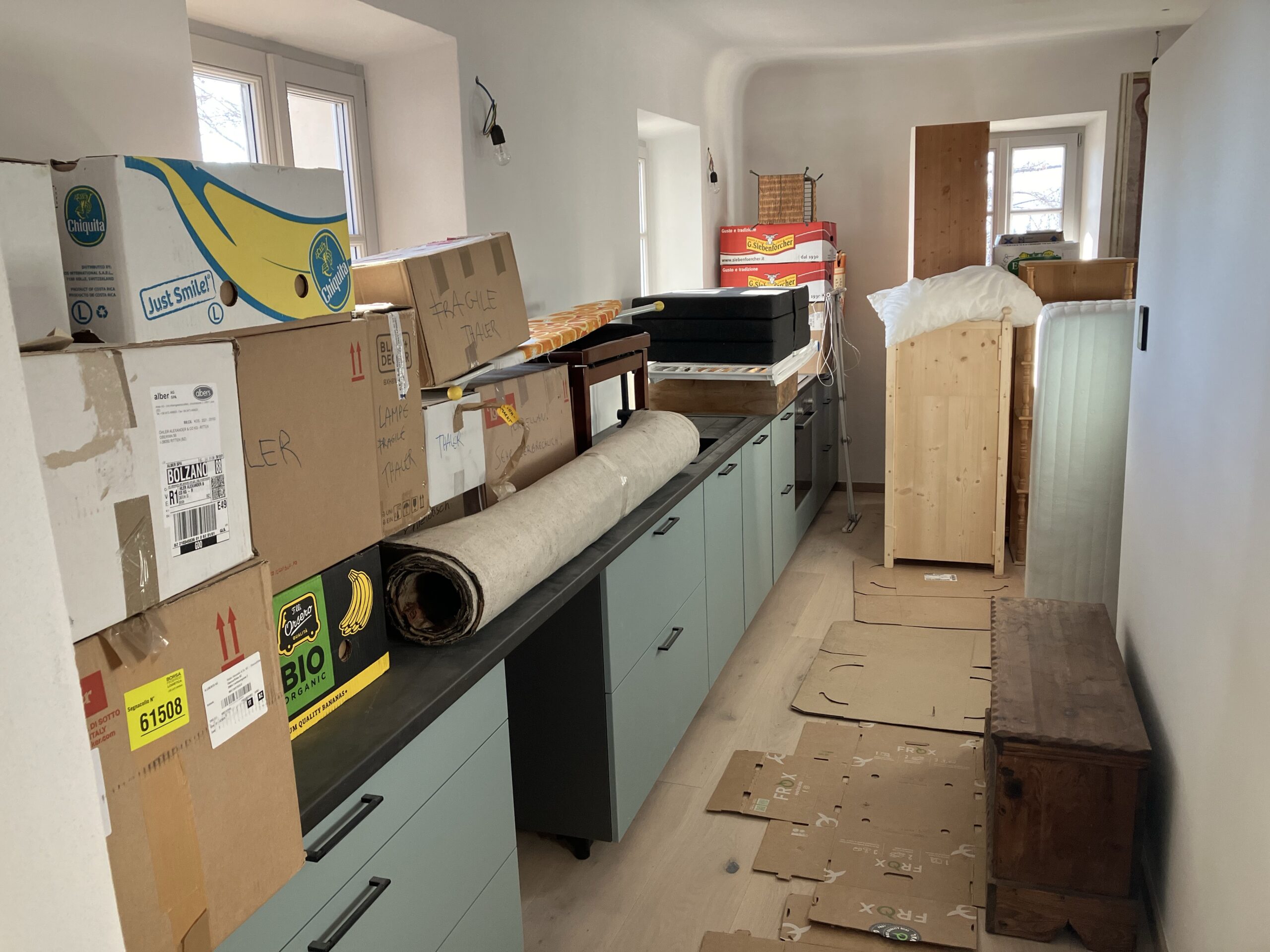 Einrichtung Wohnung Lori und Montage Küche Wohnung Robert, Rückführung Möbel aus Lager