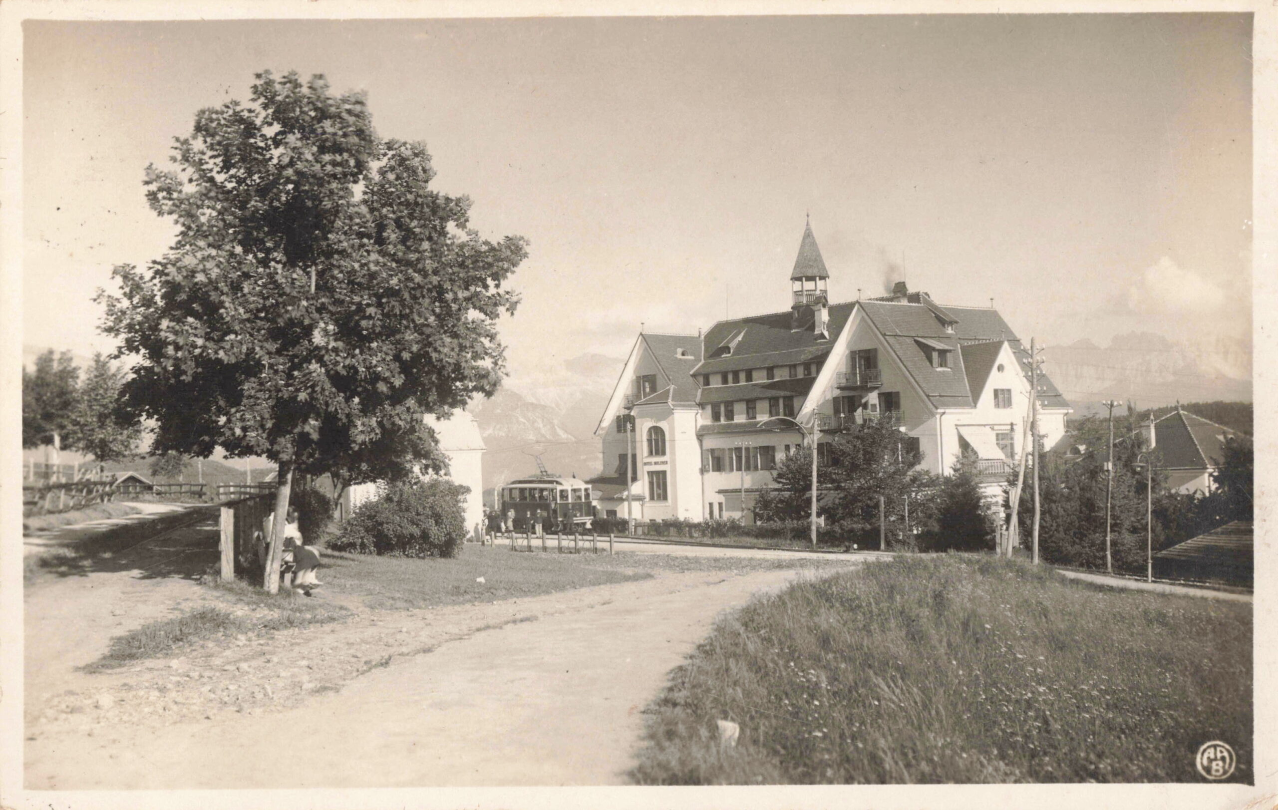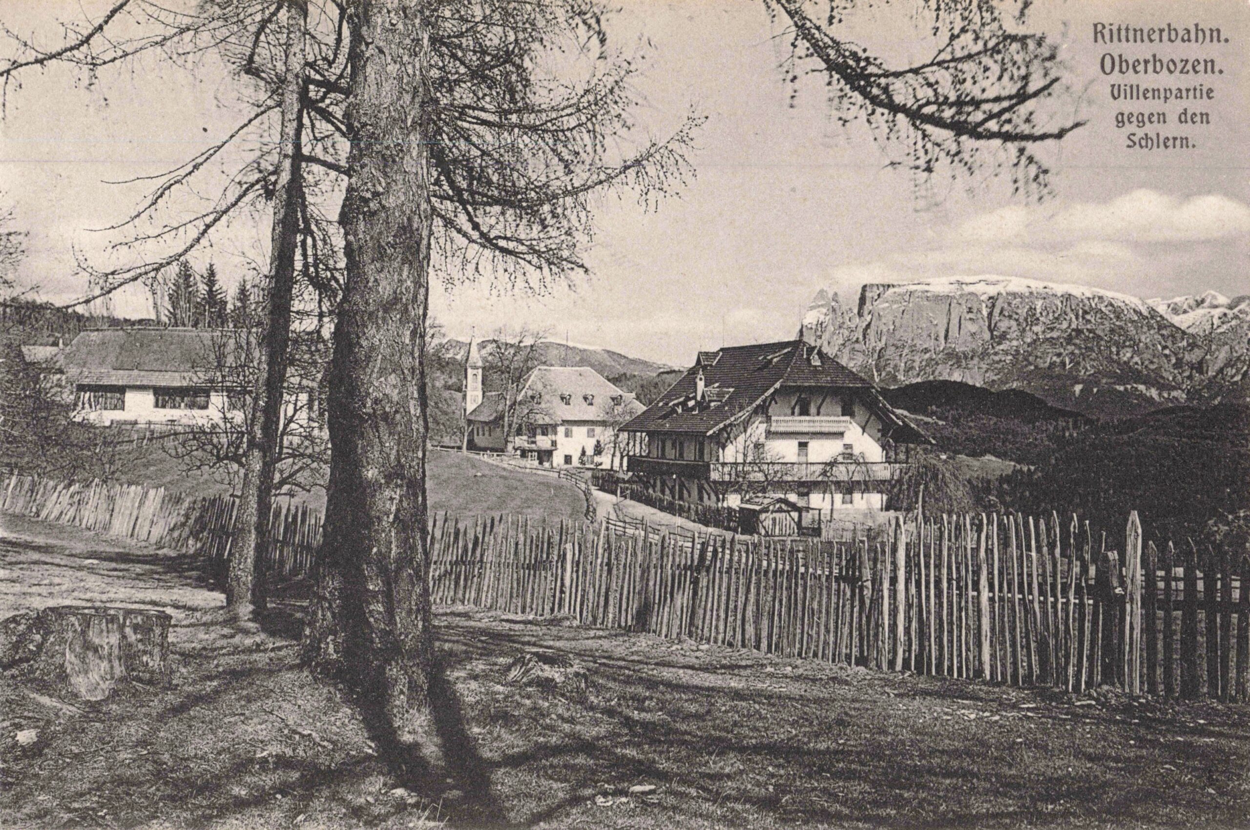 Rittnerbahn. Oberbozen. Villenpartie gegen den Schlern.