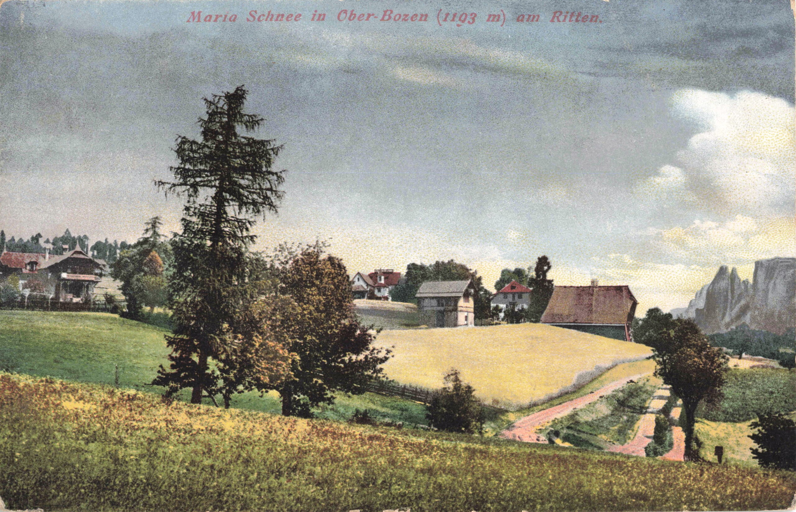 Aus der eigenen Sammlung zum Thema Ritten, hauptsächlich Oberbozen. Es sind (momentan 118) Abbildungen, deren Inhalte in den Blogbeiträgen behandelt werden, aber auch Ansichtskarten, welche eher selten sind, ungewohnte Blickwinkel bieten oder inzwischen stark Verändertes oder gar Verschwundenes darstellen. Mittels der Kategorie „Ansichtskarte der Woche“ werden die Blogeinträge zusammengefasst, wo ihre Inhalte beschrieben und mit den Artikeln in Verbindung gebracht werden.