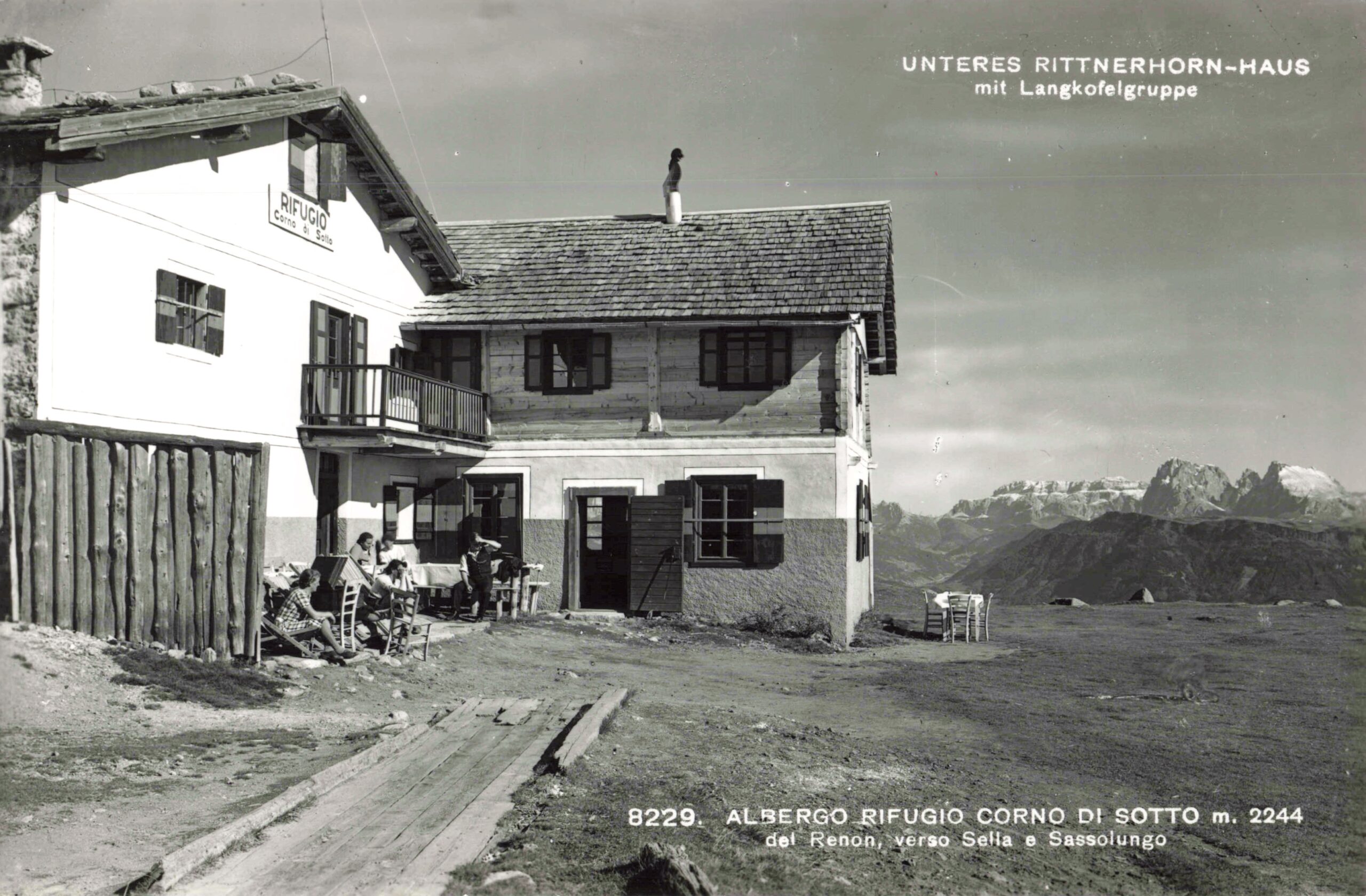 UNTERES RITTNERHORN-HAUS mit Langkofelgruppe 8229. ALBERGO RIFUGIO CORNO DI SOTTO m. 2244 del Renon, verso Sella e Sallolungo