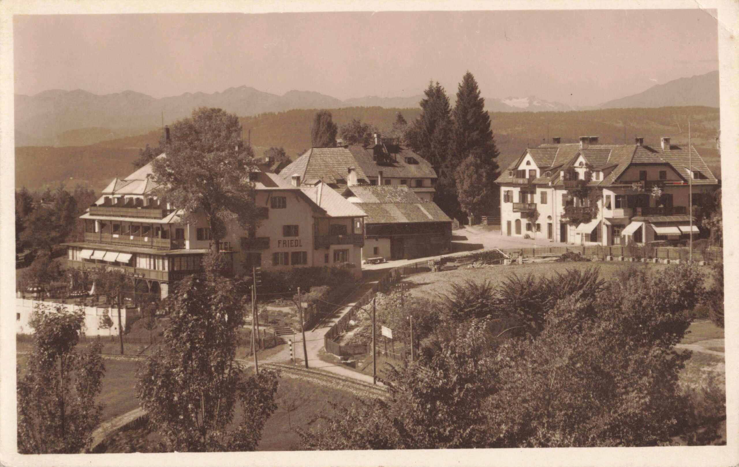 Soprabolzano sul Renon m. 1220 Parte coll’Hotel Friedl verso Alpi Centrali